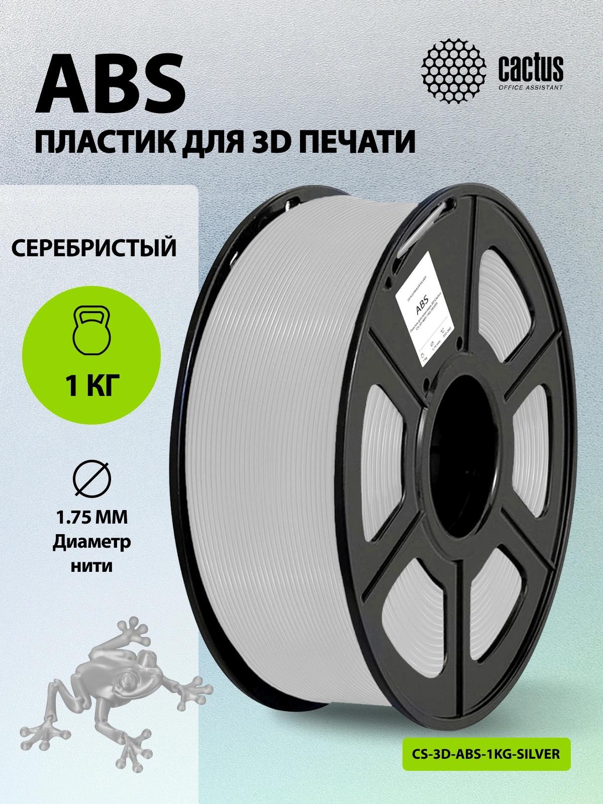 Пластик для принтера 3D Cactus CS-3D-ABS-1KG-SILVER ABS d1.75мм 1кг L386м 1цв.