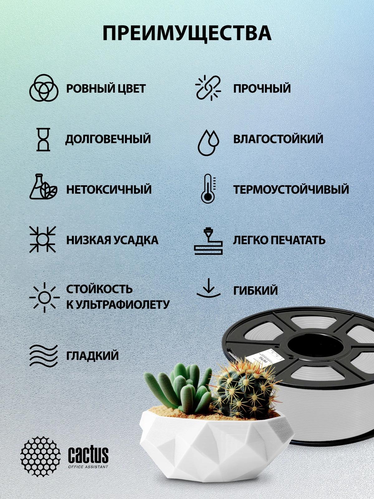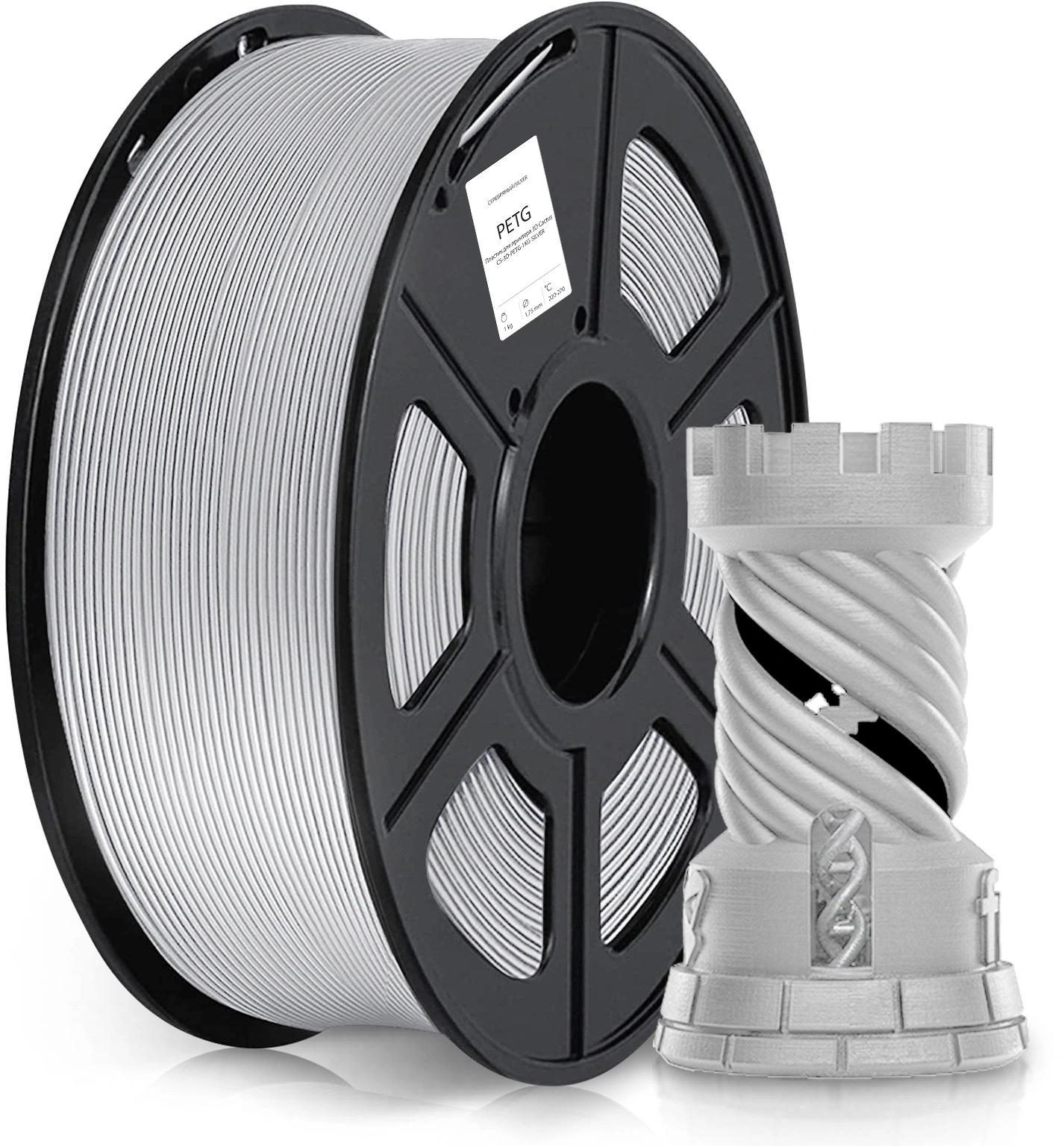 Пластик для принтера 3D Cactus CS-3D-PETG-1KG-SILVER PETG d1.75мм 1кг L316м 1цв.