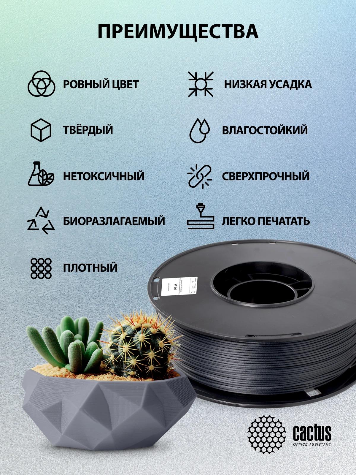 Пластик для принтера 3D Cactus CS-3D-PLA-1KG-CARBON PLA d1.75мм 1кг L326м 1цв.