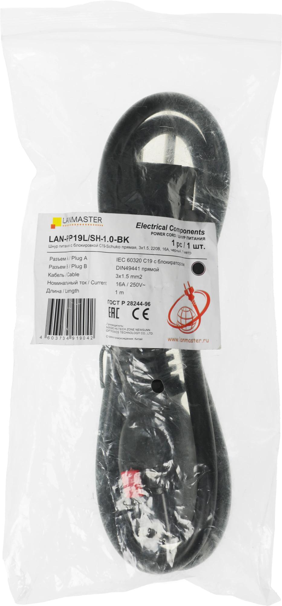 Шнур питания Lanmaster LAN-PP19L/SH-1.0-BK C19-Schuko проводник.:3x1.5мм2 1м 220В 16А черный
