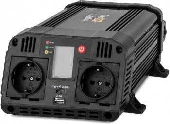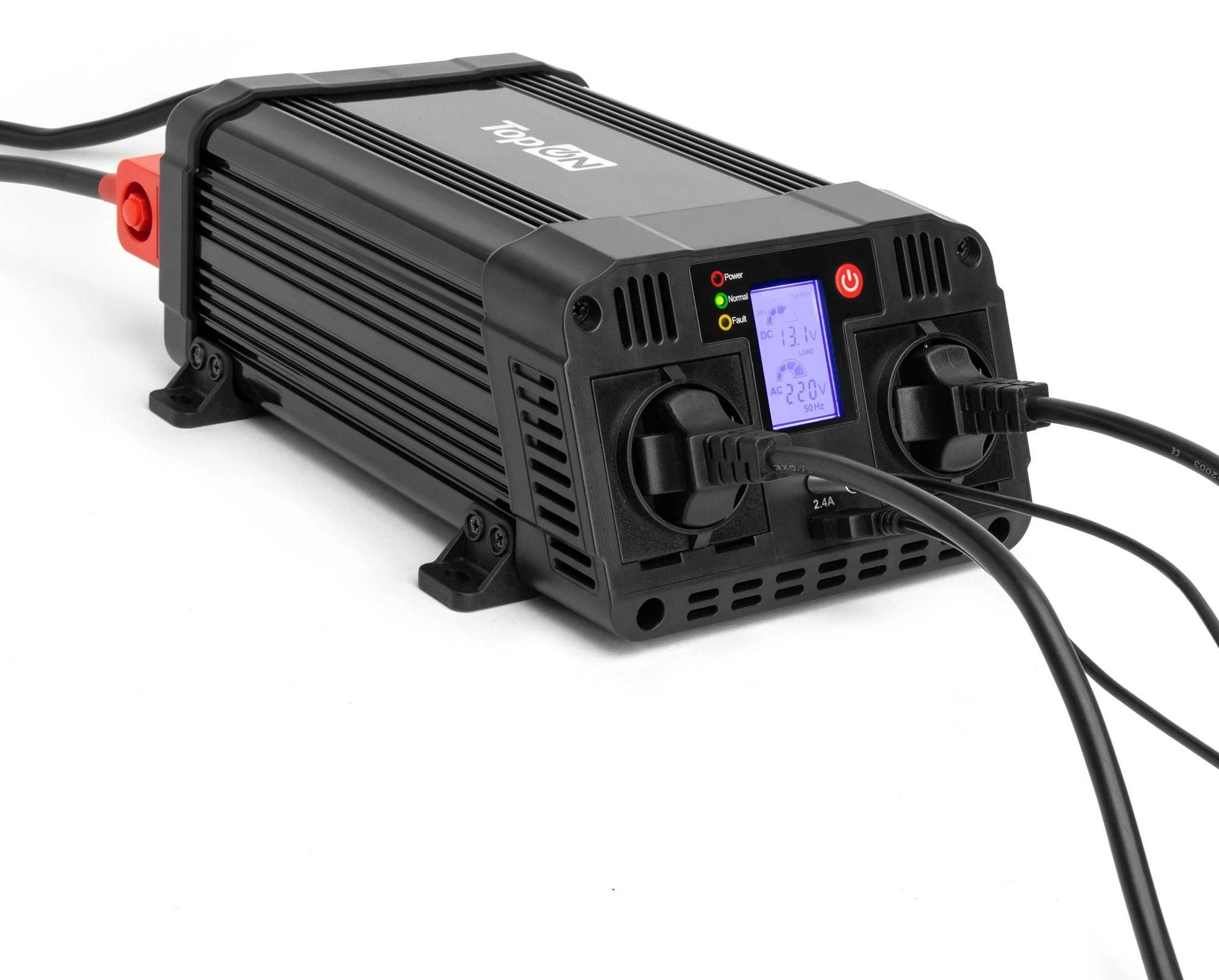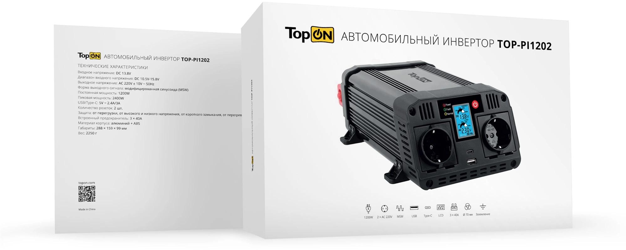 Модифицированная синусоида (MSW), порты Type-C и USB, LCD-экран, активное охлаждение, отслеживание ёмкости аккумулятора, медные контакты с огнестойкой оболочкой, крепления для фиксации инвертора, 3 предохранителя по 40A, контакт заземления, звуковое предупреждение, система электрических защит.