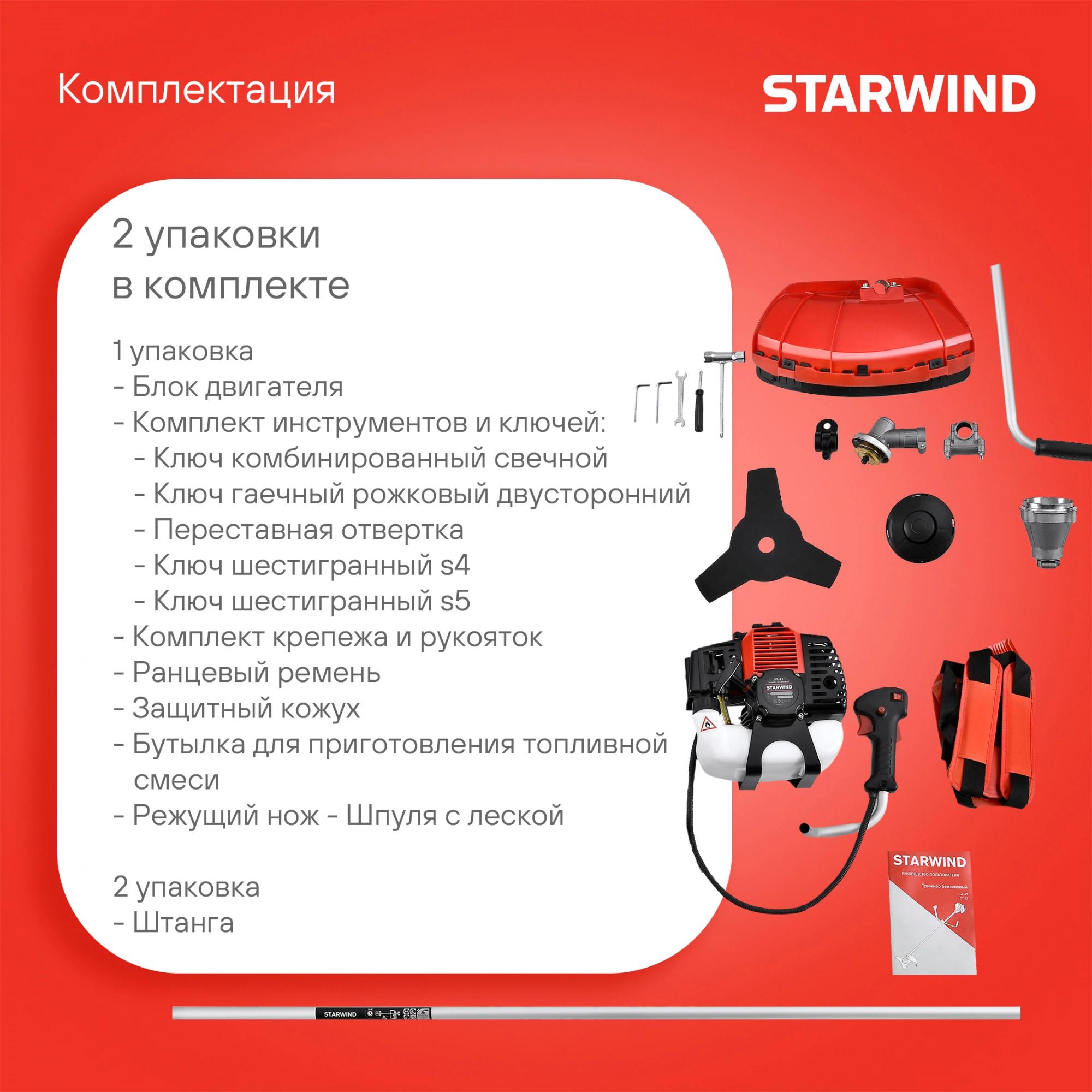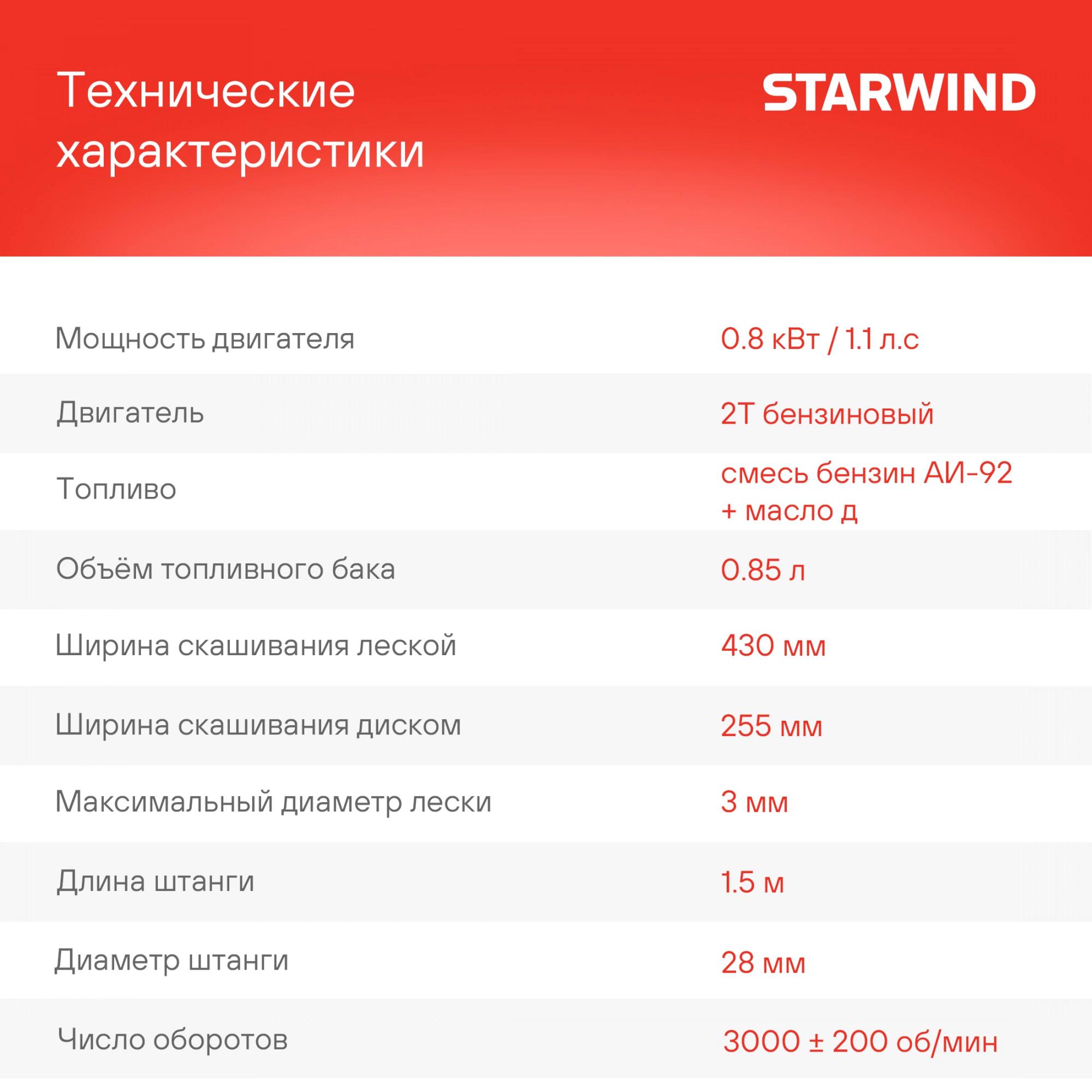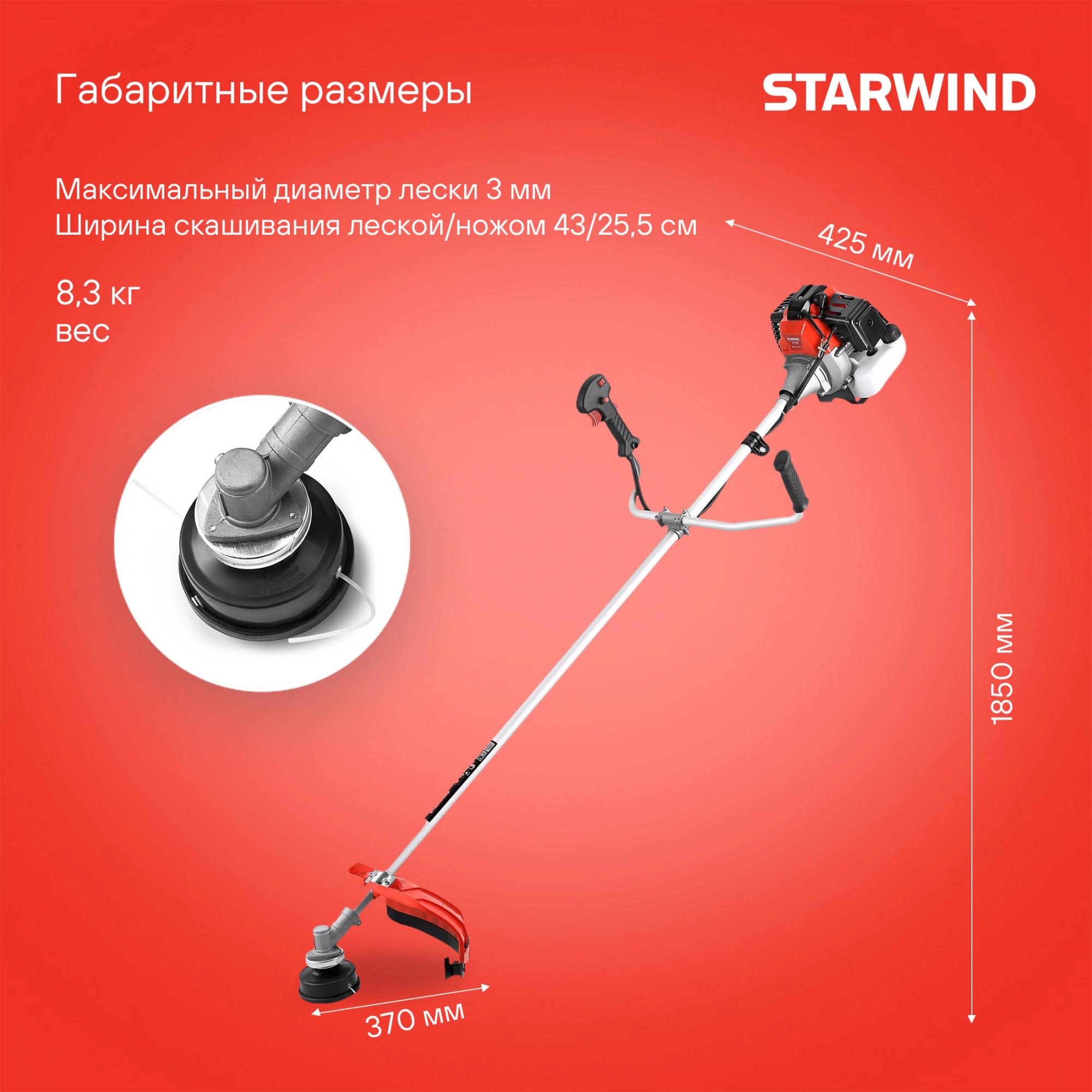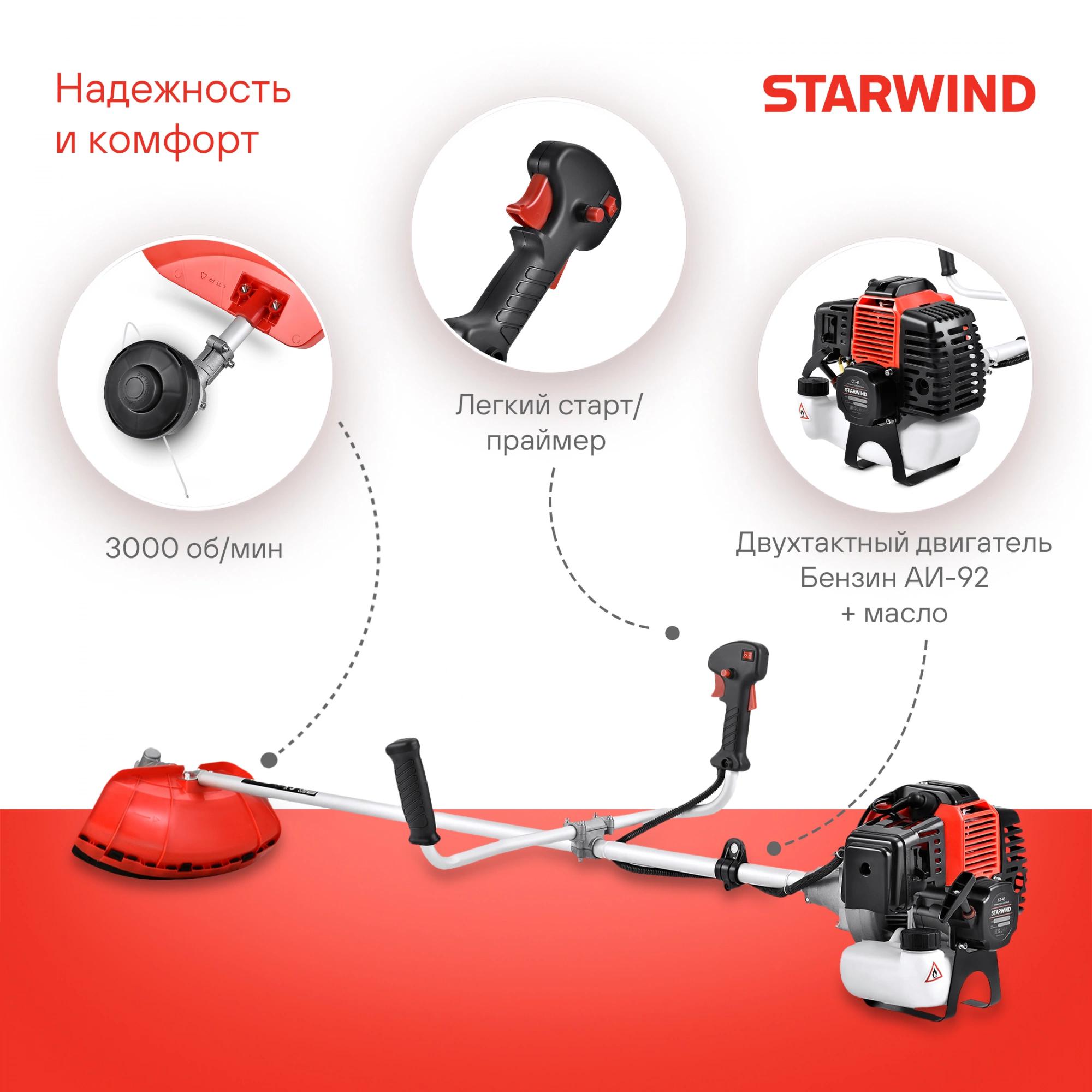 Триммер бензиновый Starwind GT-33 800Вт 1.1л.с. неразбор.штан. реж.эл.:леска/нож