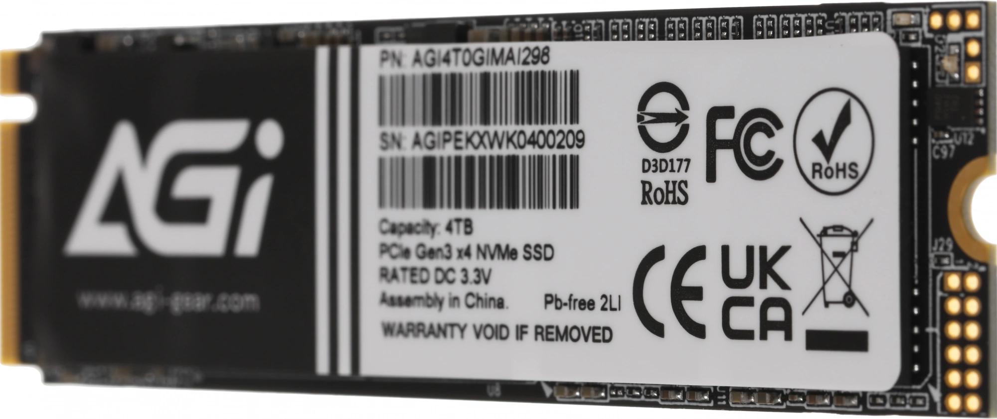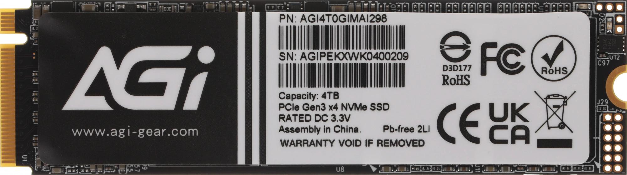 Накопитель SSD AGi PCIe 3.0 x4 4TB AGI4T0GIMAI298 AI298 M.2 2280
