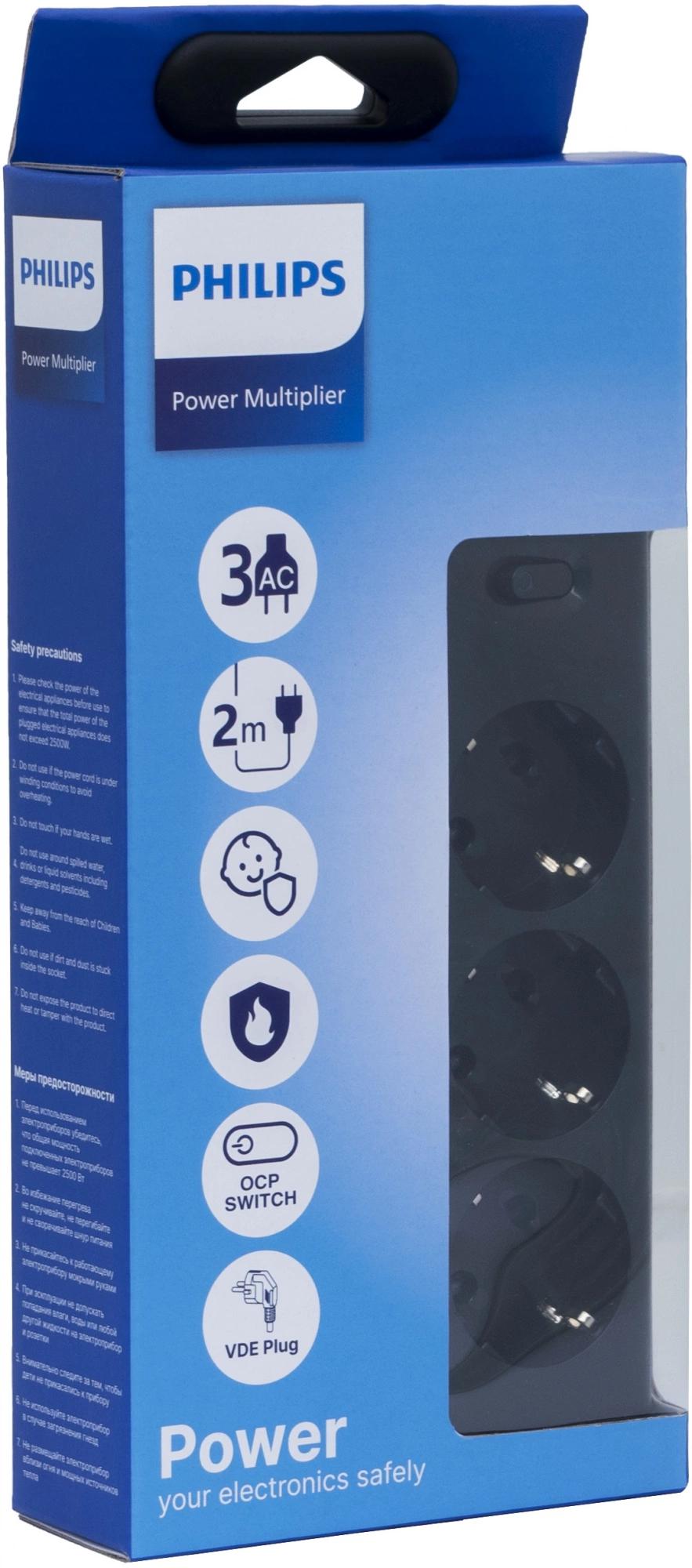 Сетевой фильтр Philips CHP2135BA/51 2м (3 розетки) черный (коробка)