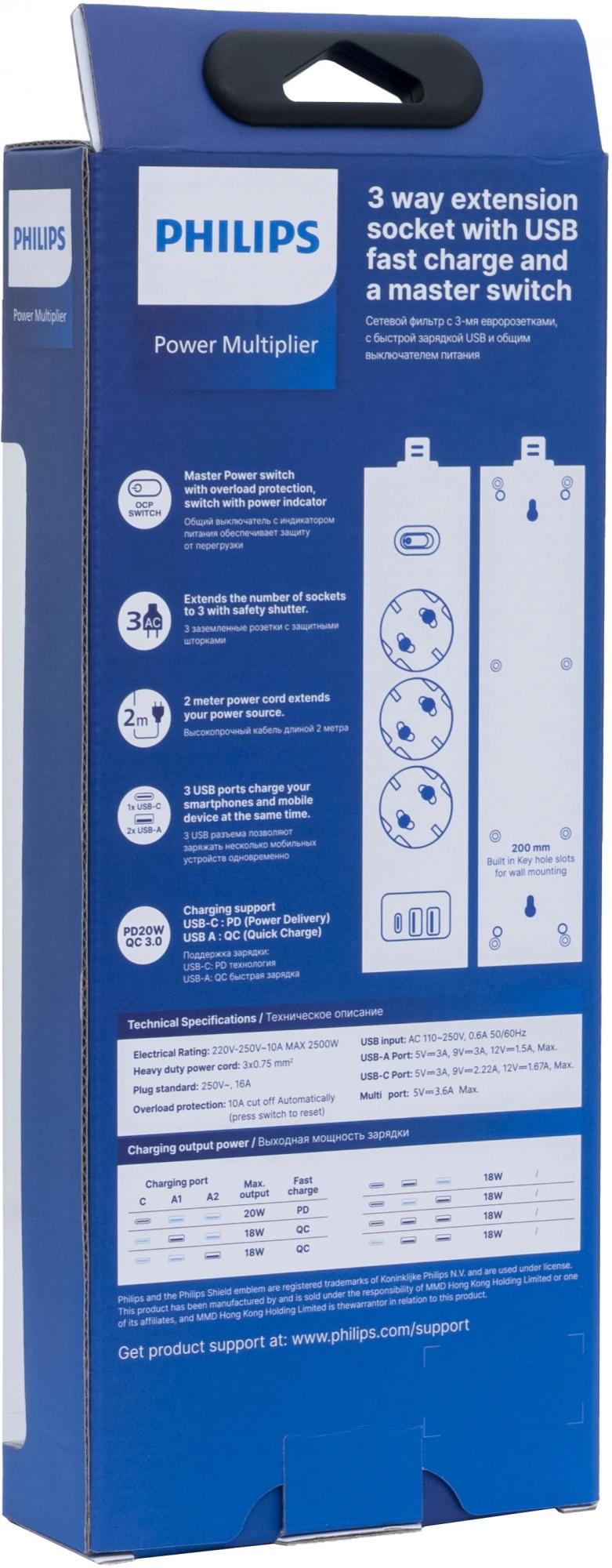 Сетевой фильтр Philips CHP4336WB/51 3м (3 розетки) белый (коробка)