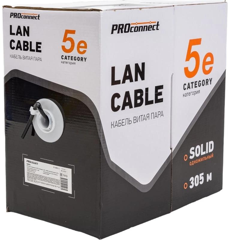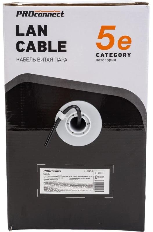 Кабель информационный PROconnect 01-0045-3 кат.5E UTP 4 пары 24AWG PE внешний 305м черный