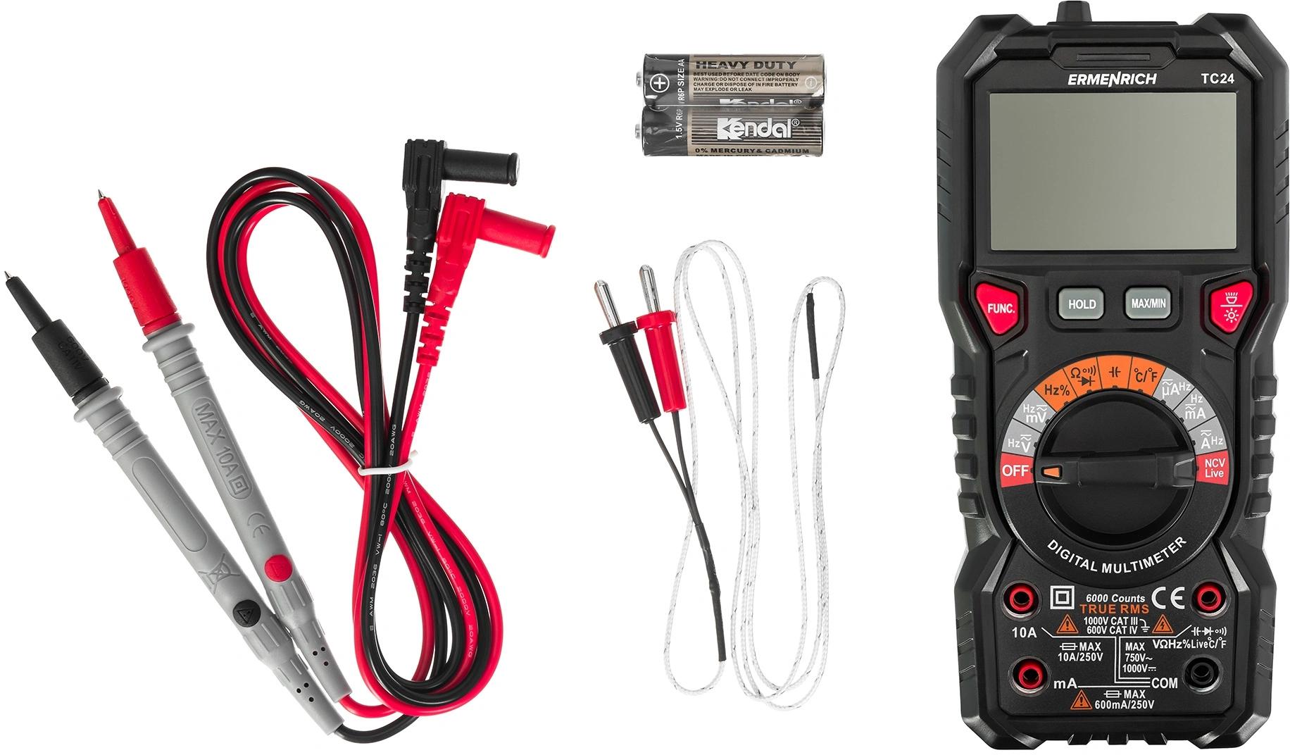 Цифровой мультиметр; щупы; инструкция по эксплуатации и гарантийный талон.