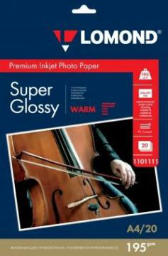 Фотобумага Lomond 1101111 A4/195г/м2/20л./тепло-белый супер глянец для струйной печати