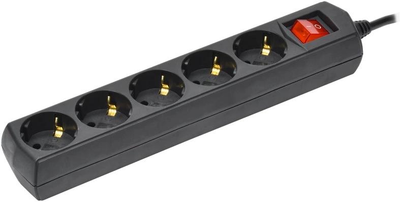 Сетевой удлинитель IEK У05В 3м (5 розеток) черный (пакет ПЭ)