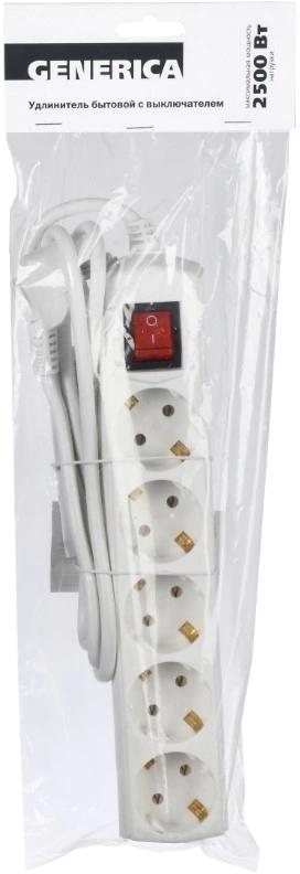 Сетевой удлинитель IEK У05В 1.5м (5 розеток) белый (пакет ПЭ)
