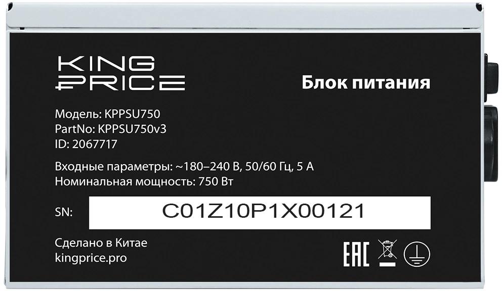 Блок питания KingPrice ATX 750W KPPSU750 (20+4pin) APFC 120mm fan 4xSATA