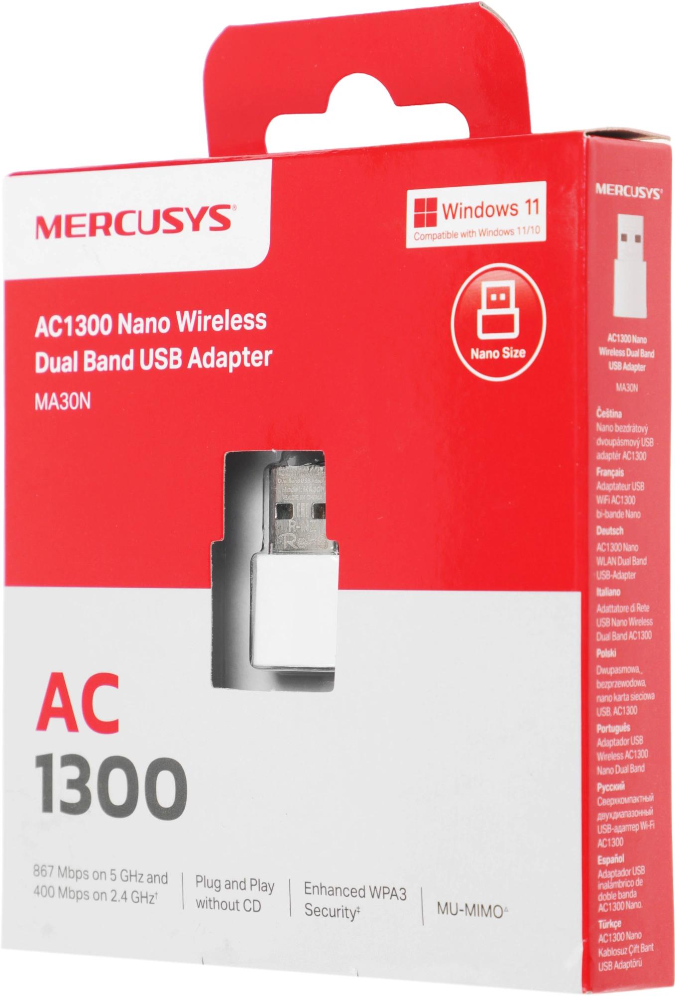 Сетевой адаптер Wi-Fi Mercusys MA30N AC1300 USB 2.0 (ант.внутр.)