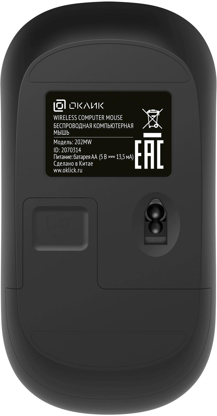Мышь Оклик 202MW черный оптическая 1000dpi беспров. USB для ноутбука 3but (2070314)