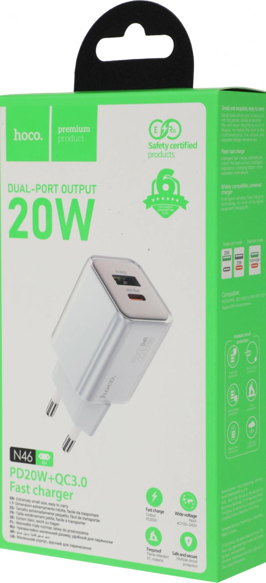 Сетевое зар./устр. Hoco N46 Glorious 20W 3A (PD+QC+AFC) USB-A/Type-C универсальное синий (35318)
