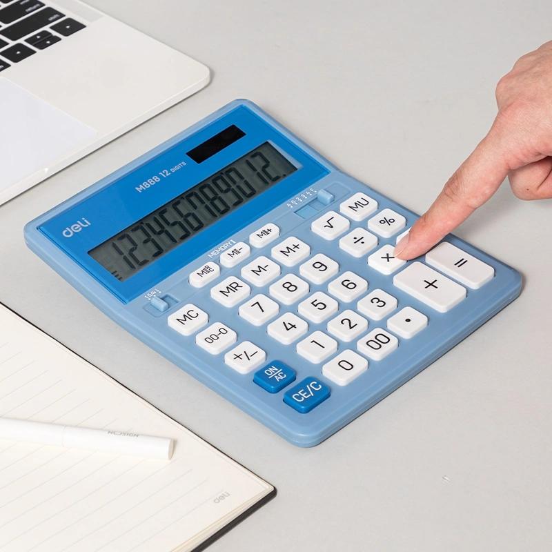 Калькулятор настольный Deli EM888A-BL голубой/белый 12-разр.