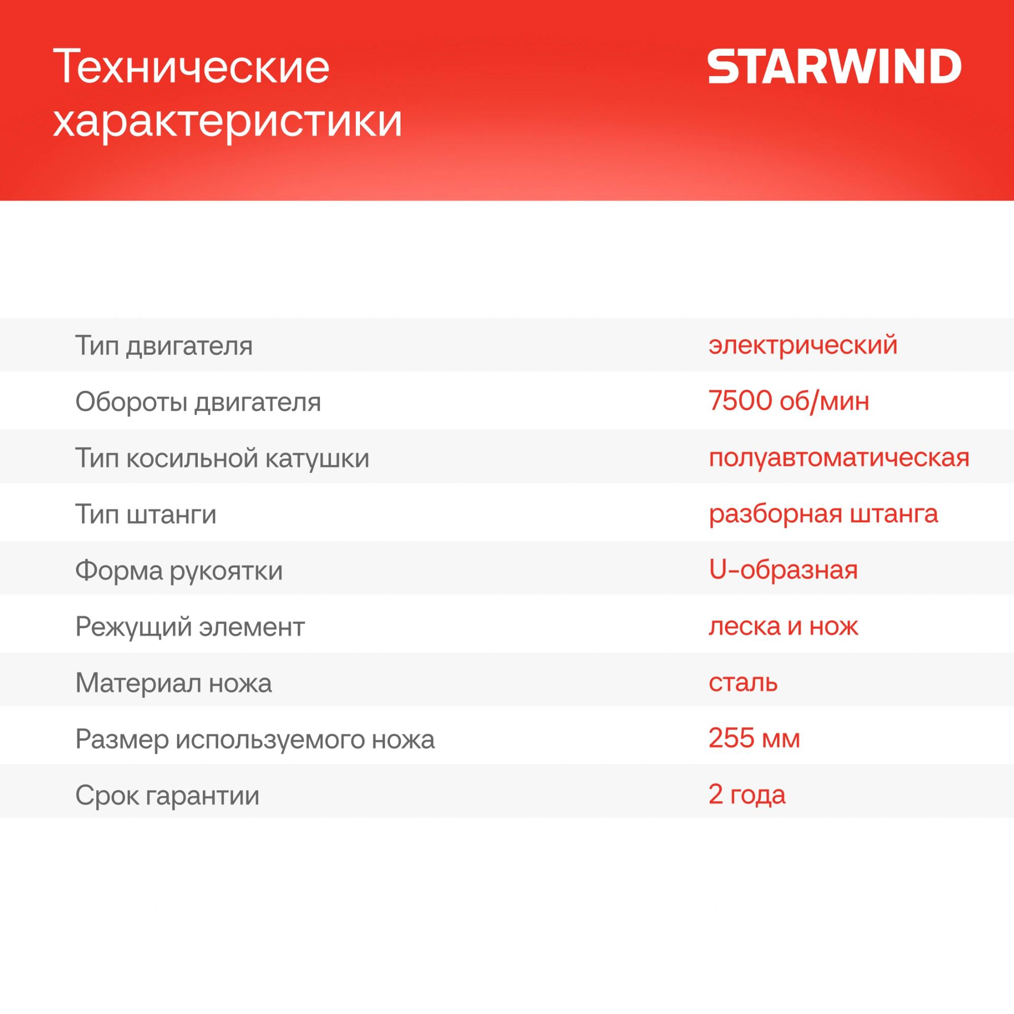 Триммер электрический Starwind SBG-300.20-0.0 аккум. разбор.штан. реж.эл.:леска/нож
