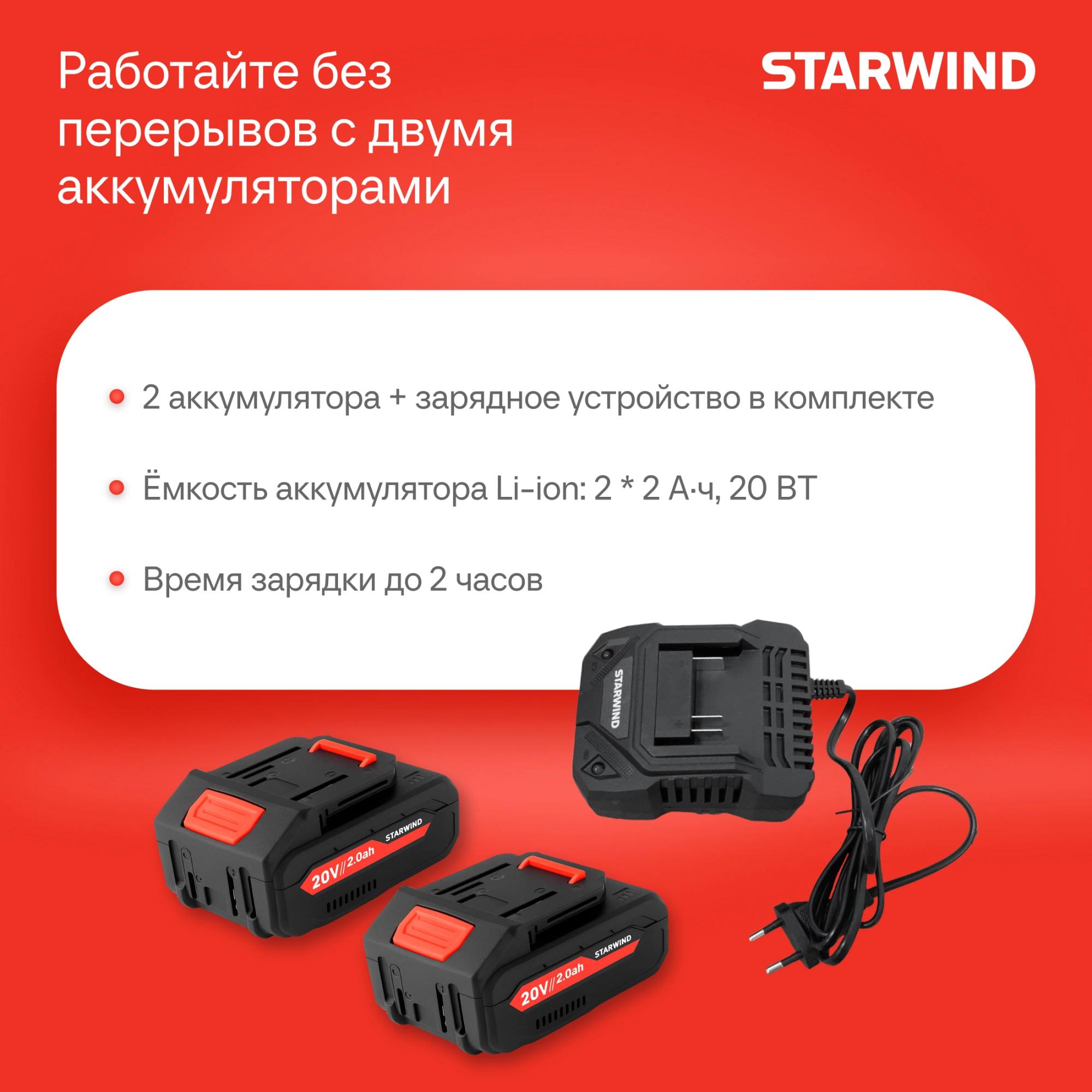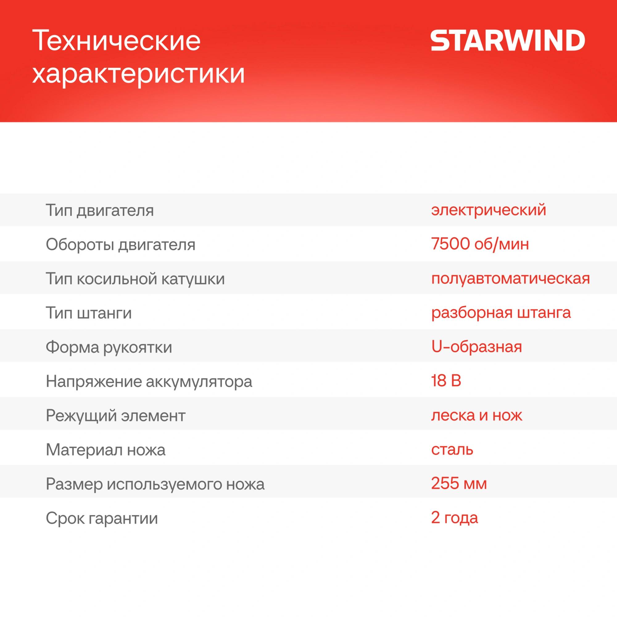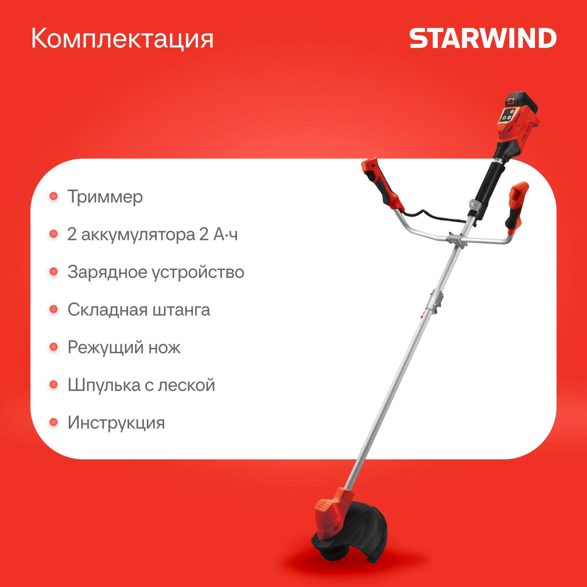 Триммер электрический Starwind SBG-300.20-4.4 аккум. разбор.штан. реж.эл.:леска/нож
