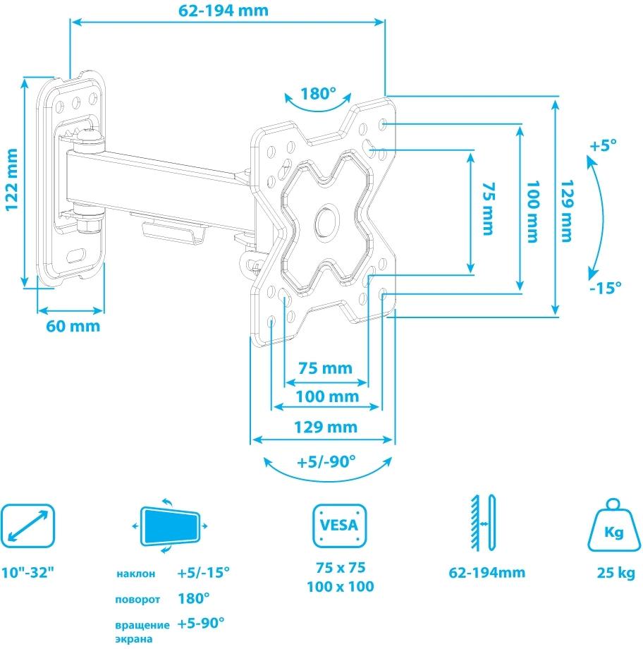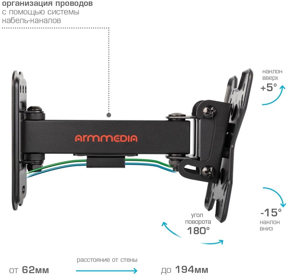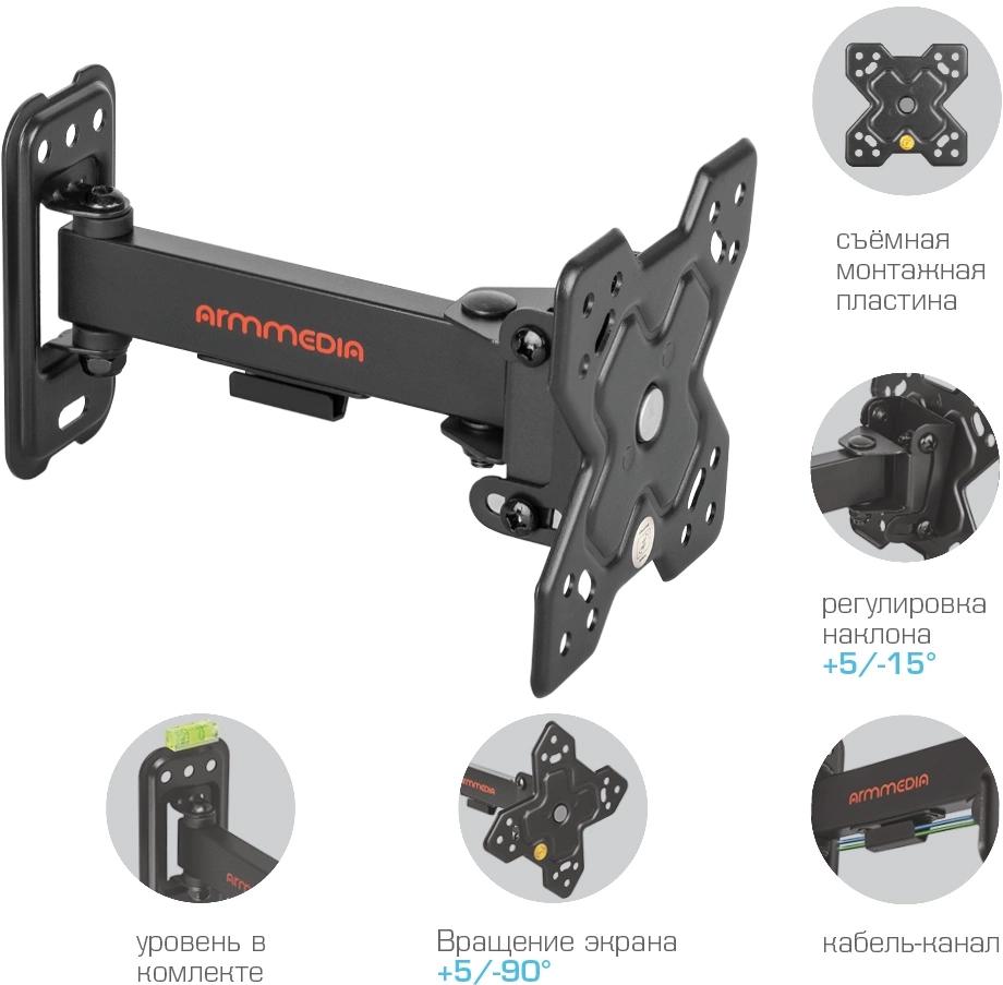 Кронштейн для телевизора Arm Media MARS-5 черный 10"-32" макс.25кг настенный поворот и наклон