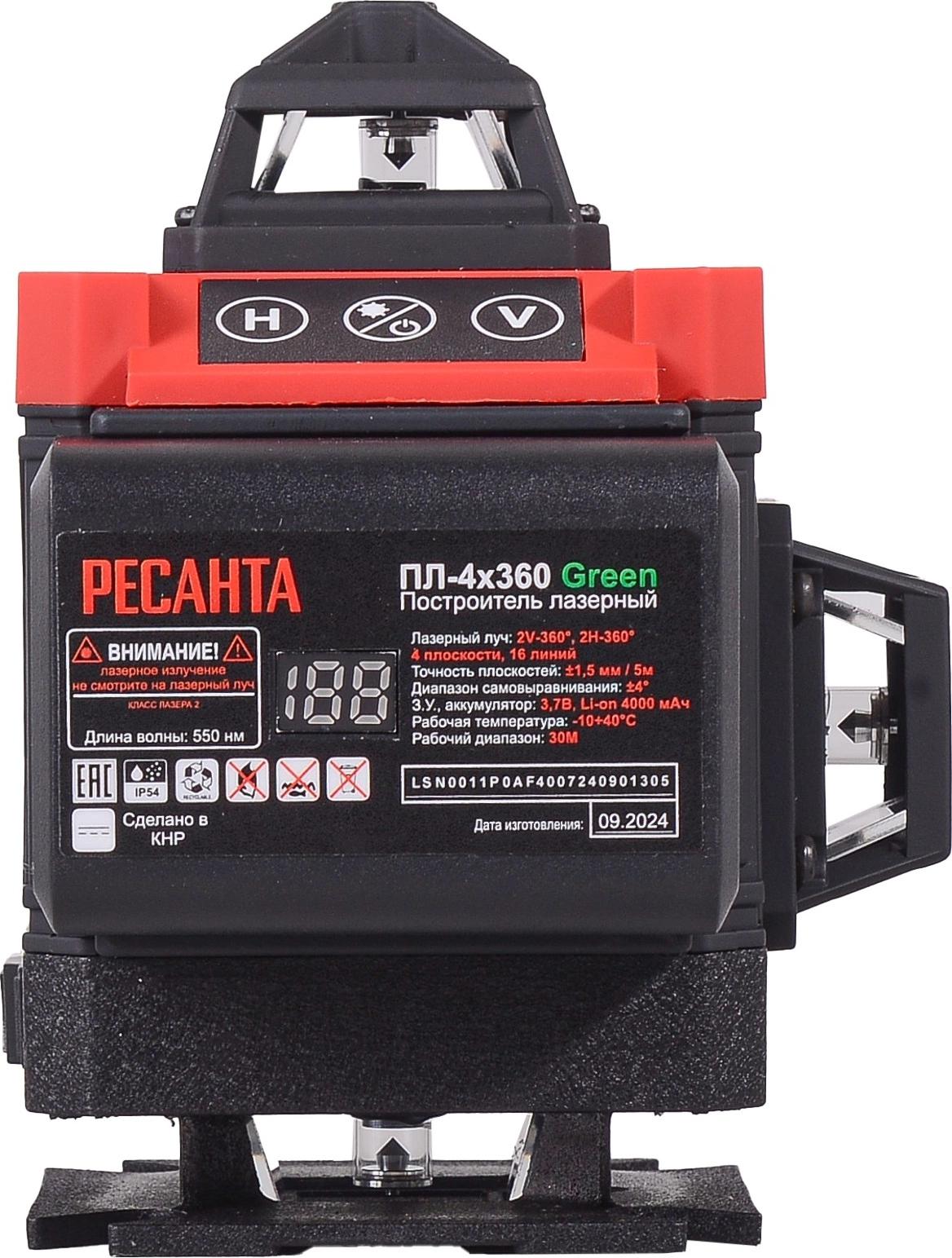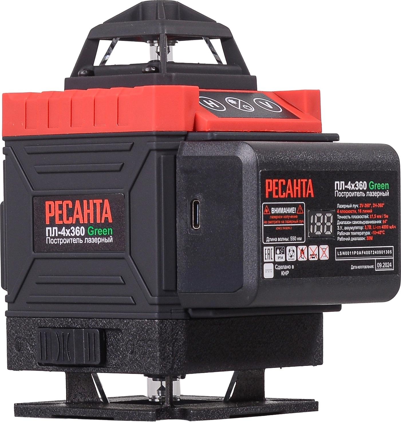 Уровень лазер. Ресанта ПЛ-4Х360 2кл.лаз. 550нм цв.луч. зеленый 4луч. (61/10/544)