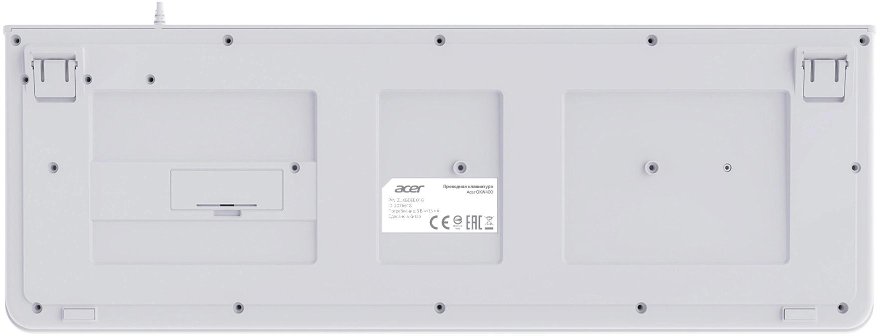 Клавиатура Acer OKW400 белый USB Multimedia (ZL.KBDEE.01B) кабель 1.8м