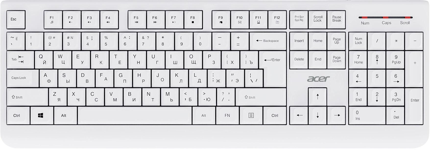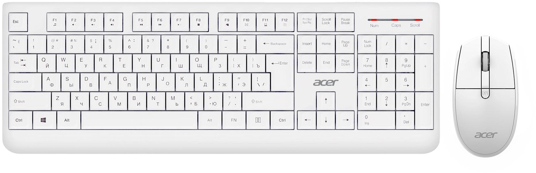 Клавиатура + мышь Acer OCC401 клав:белый мышь:белый USB беспроводная (ZL.ACCCC.017)