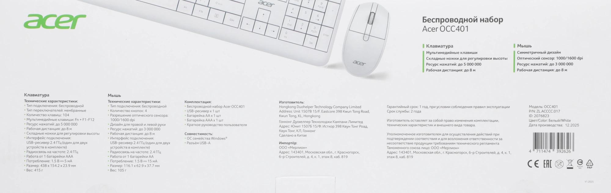 Клавиатура/мышь/приемник/руководство пользователя/1AA/1AAA