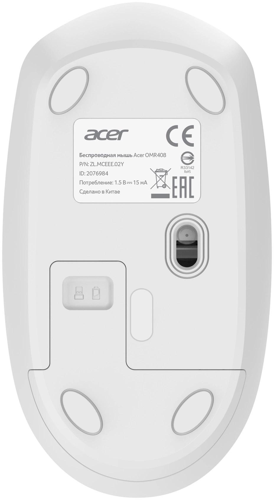 Мышь Acer OMR408 белый оптическая 1600dpi беспров. USB для ноутбука 2but (ZL.MCEEE.02Y)