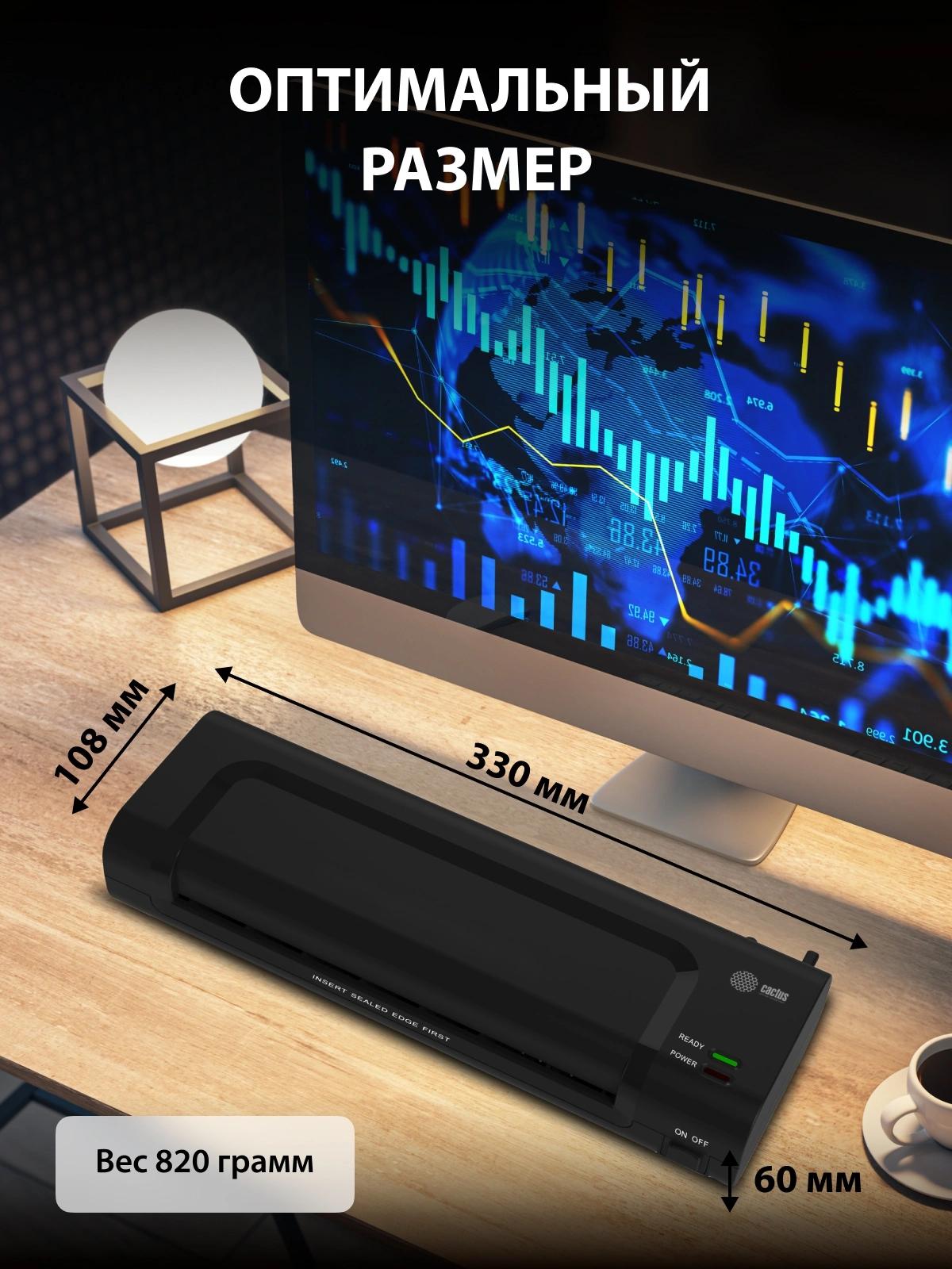 Ламинатор Cactus CS-LAB-C1 черный A4 (70-125мкм) 25см/мин (2вал.) лам.фото