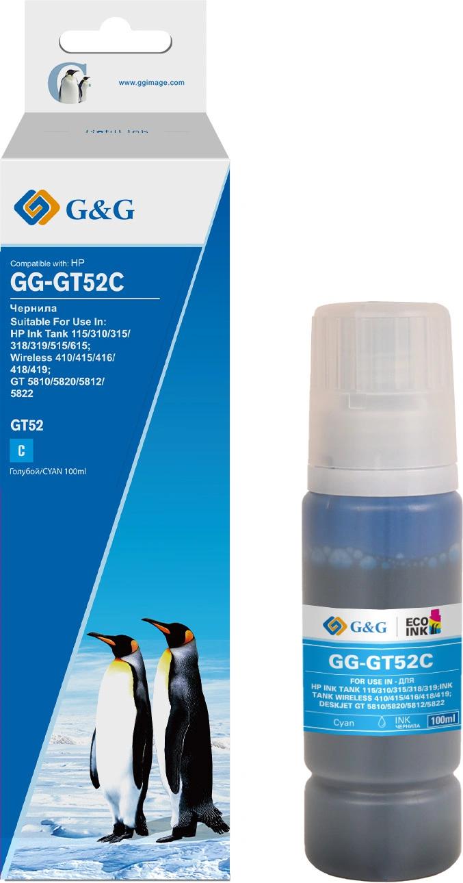 Чернила G&G GG-GT52C голубой100мл для HP Ink Tank 110/115/116/118/310/315/316/318/319/515/615;Wireless 410/411/415/416/418/419;GT 5810/5820/5812/5822