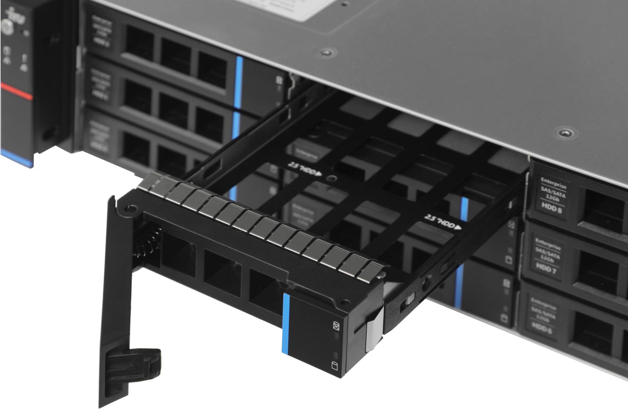 Корзина на 12 дисков SAS/SATA 2.5/3.5 с активным backplane. Установлен контроллер LSI 9361-8I SGL 12Gb/s RAID 0/1/10/5/6/50/60 8i-ports 1Gb с батареей. Тыловая корзина на 2 системных диска SATA 2.5. Рельсы в комплекте.