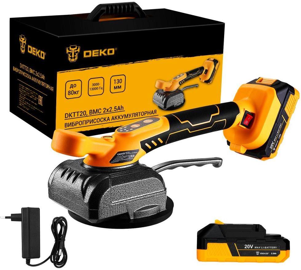 Виброприсоска аккумуляторная для укладки плитки DEKO DKTT20, BMC 2x2.5Ah предназначена для перемещения и установки настенной плитки. Инструмент поставляется в кейсе, что обеспечивает удобство хранения и простоту транспортировки.
