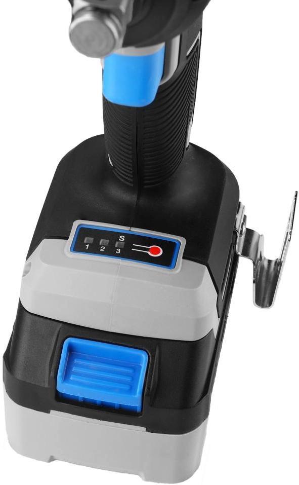Гайковерт - 2 шт. АКБ, зарядное устройство, скоба поясная, саморез, уплотнительное кольцо, штифт, руководство по эксплуатации, кейс.