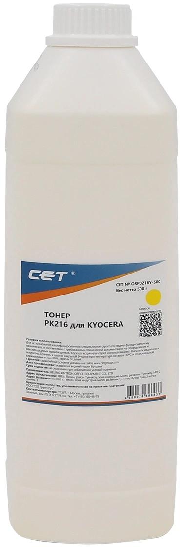 Тонер Cet PK216 OSP0216Y-500 желтый бутылка 500гр. для принтера Kyocera TASKalfa 2552ci/2553ci/3252ci/3253ci/4053ci