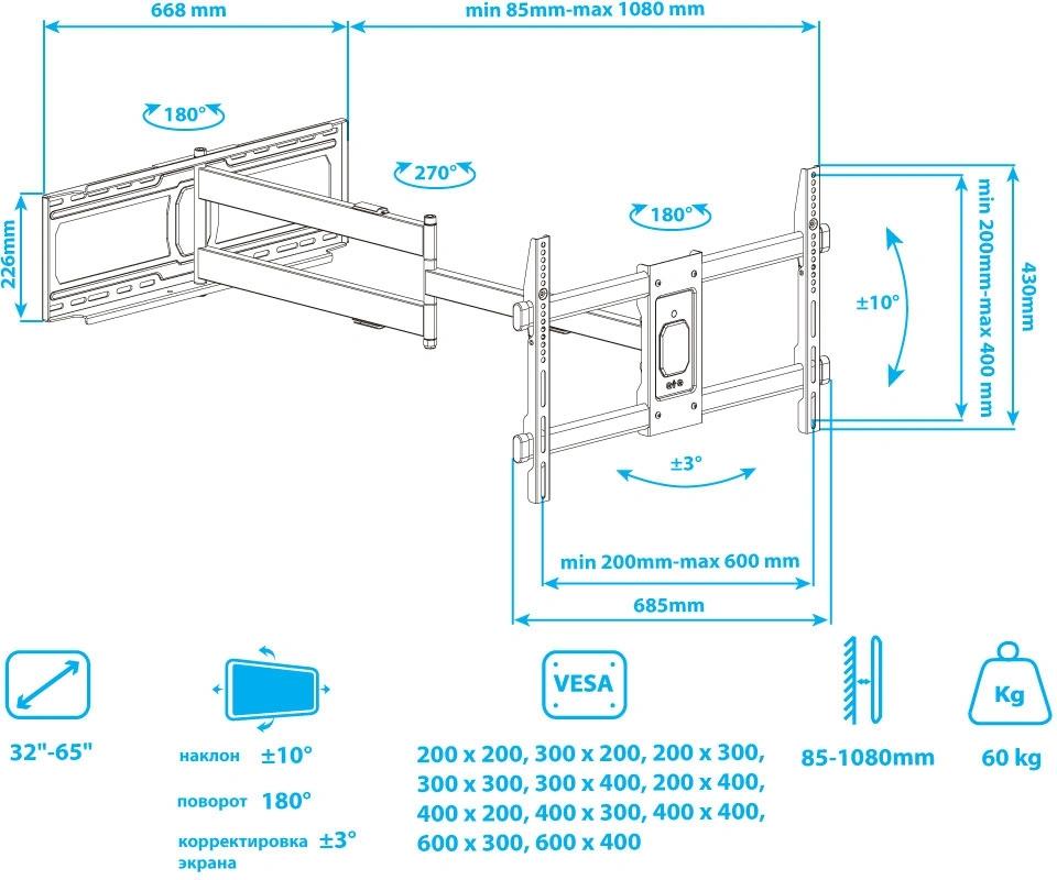 Подходит для телевизоров c диагональю