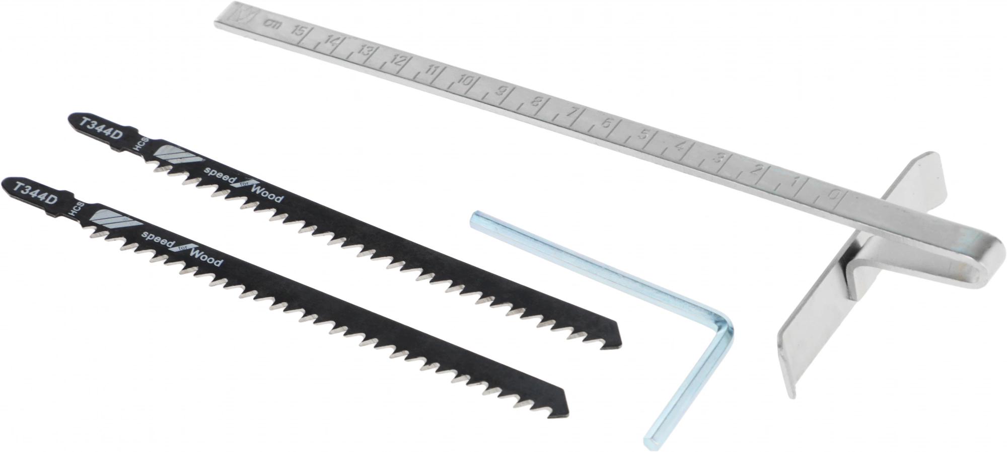 Ножницы листовые, ключ шестигранный, параллельная направляющая, пилка по дереву, пилка по металлу.