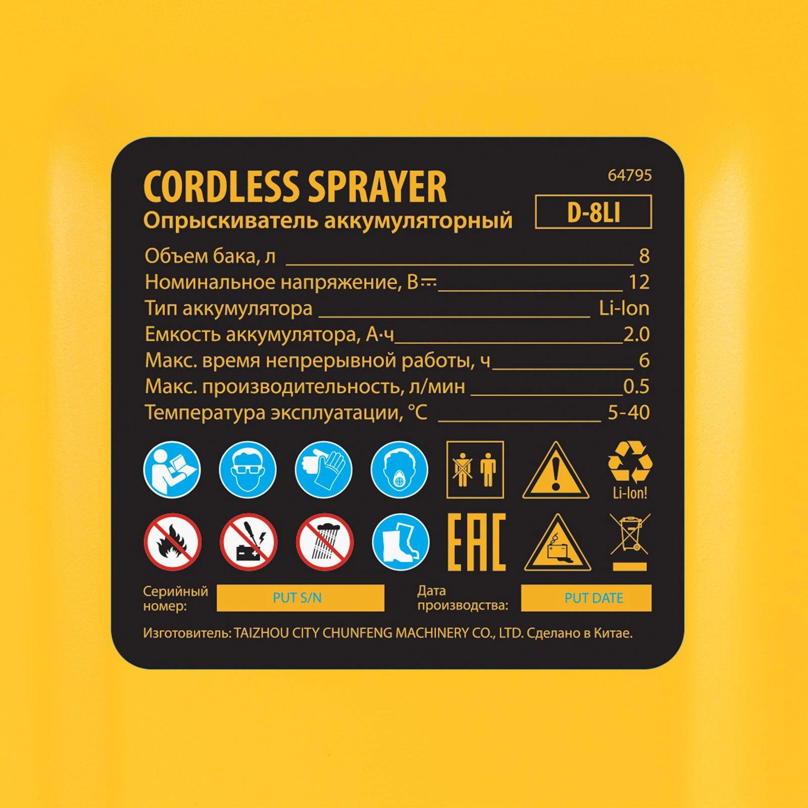 Опрыскиватель Denzel D-8LI аккум. наполь. 8л желтый/черный (64795)