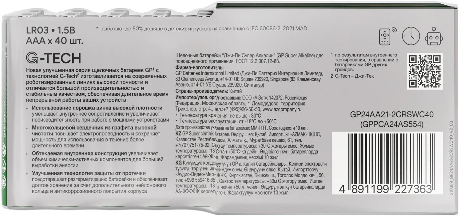 Батарея GP Super Alkaline 24AA21-2CRSWC40 AAA (40шт) спайка