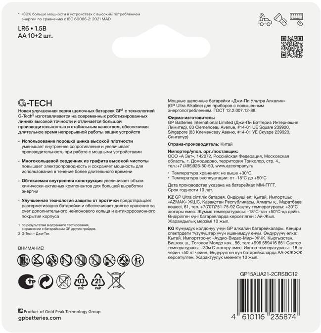 Батарея GP Ultra 15AUA21-2CRSBC12 AA (12шт) блистер