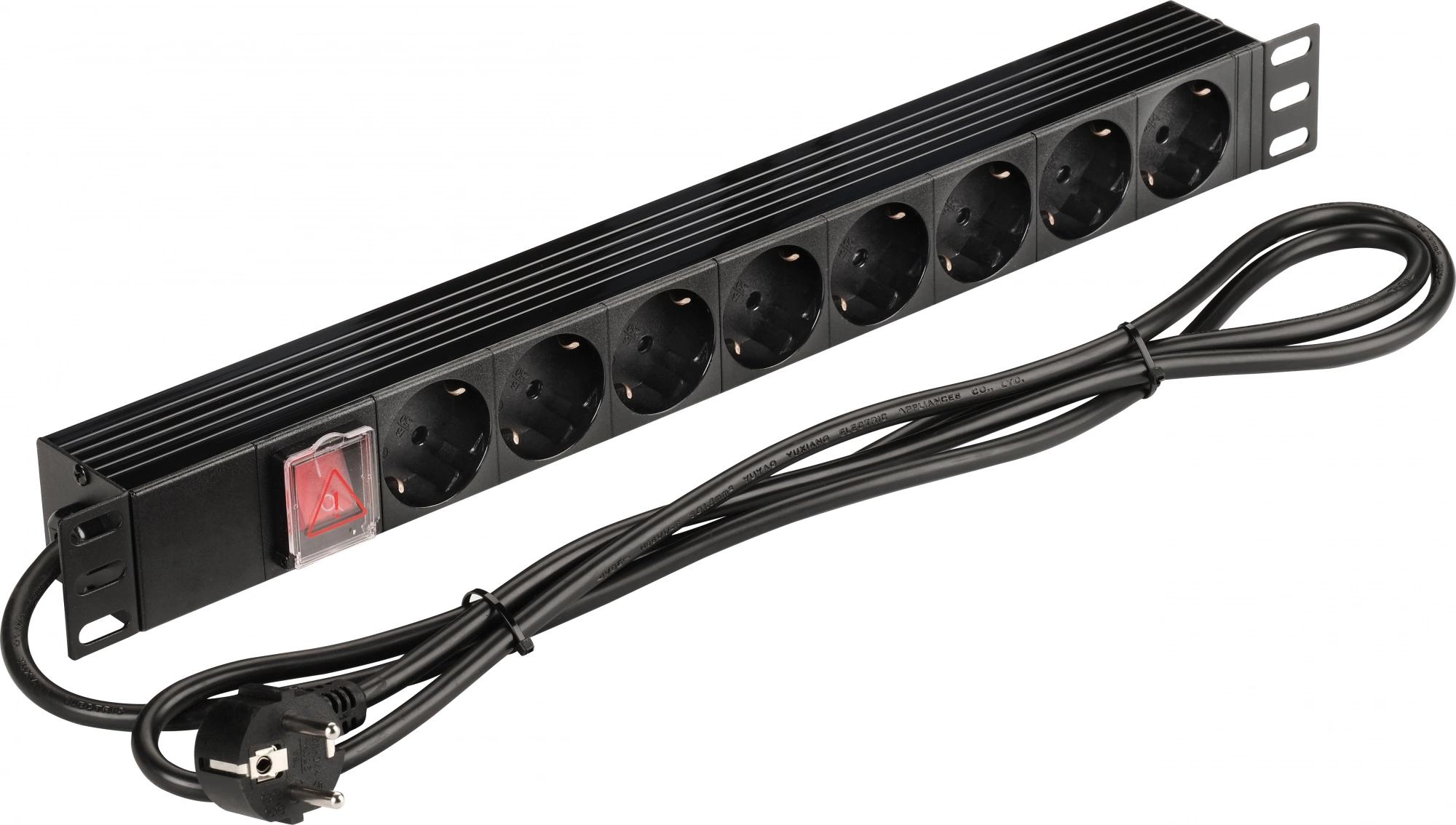 Блок распределения питания Lanmaster NM-PD16A-8XSH+S-2.0 гор.размещ. 8xSchuko базовые 16A Schuko 2м