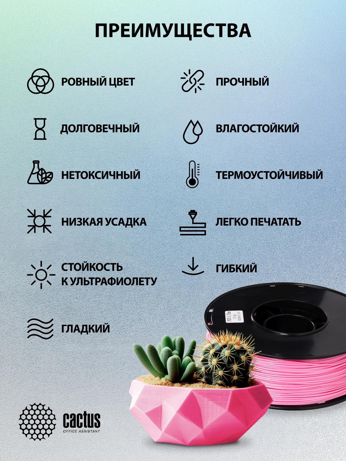 Пластик для принтера 3D Cactus CS-3D-PETG-1KG-PINK PETG d1.75мм 1кг L316м 1цв.