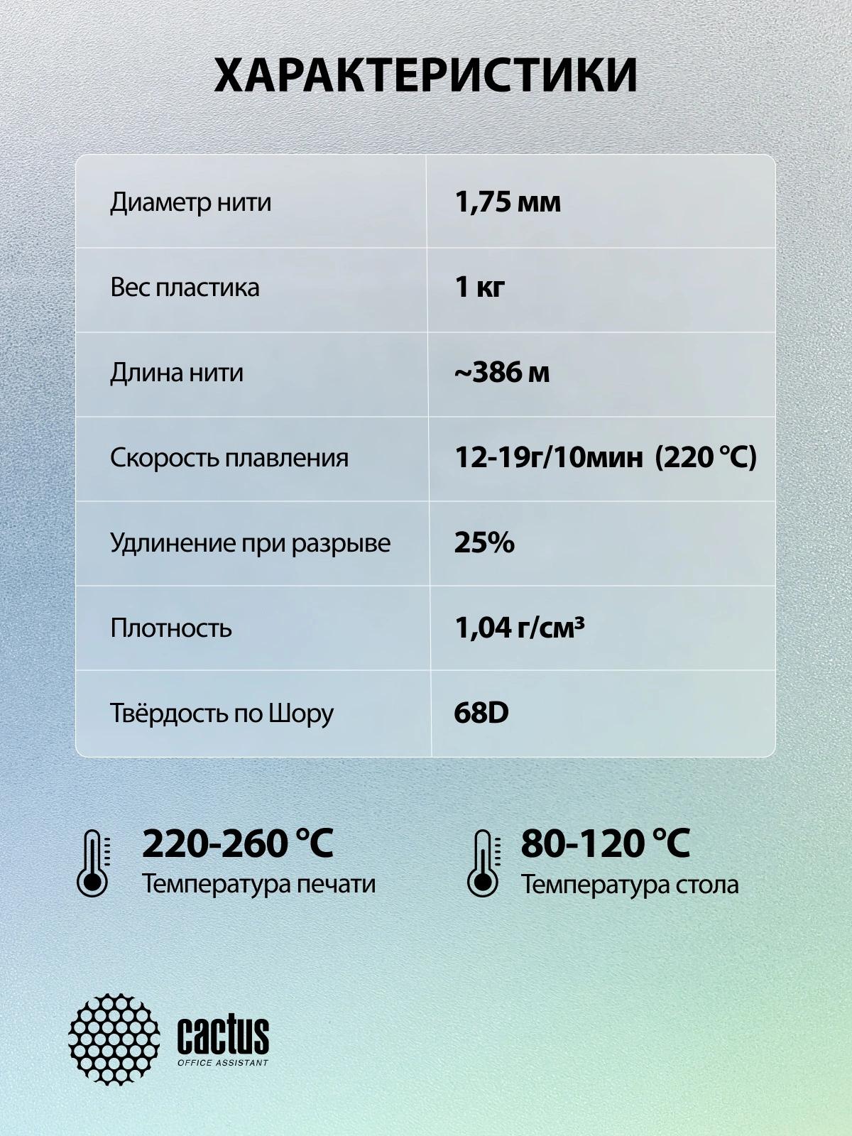 Пластик для принтера 3D Cactus CS-3D-ABS-1KG-L-ORAN ABS LUMINOUS d1.75мм 1кг 1цв.