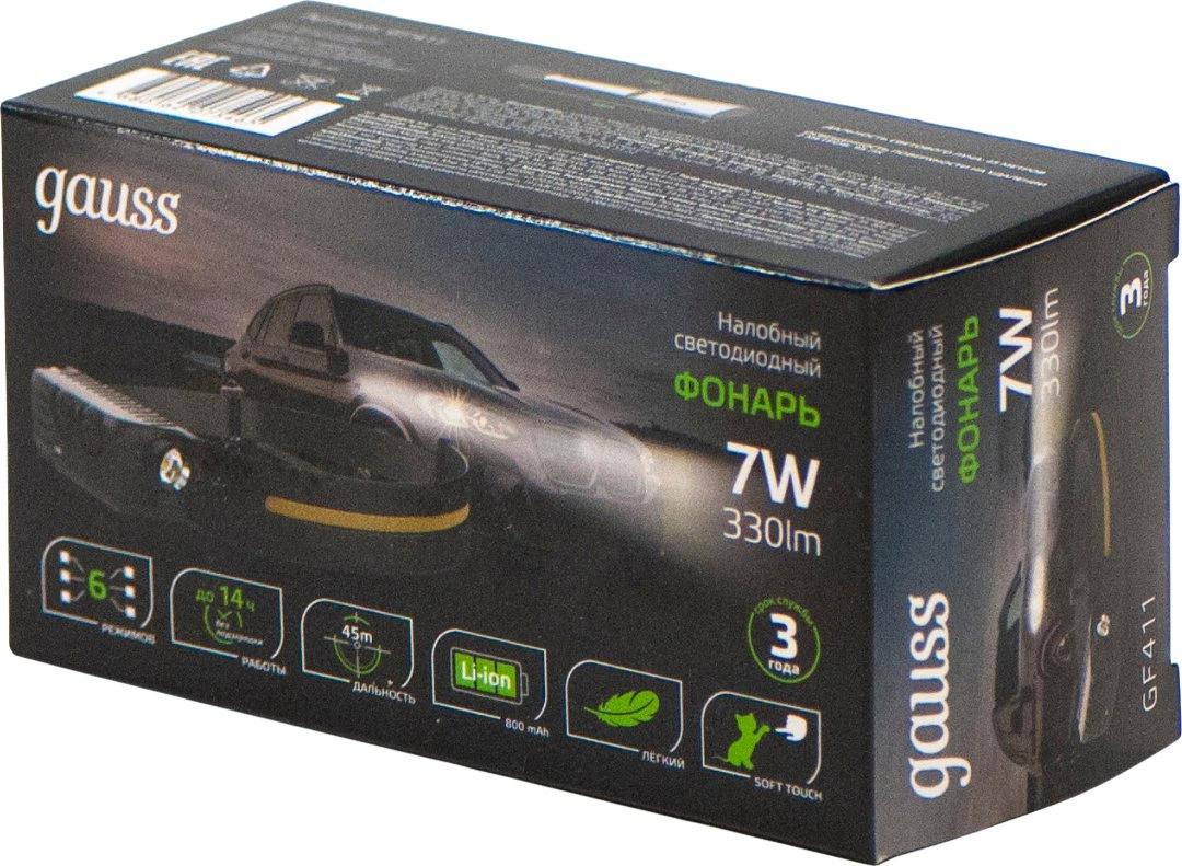 Фонарь налобный Gauss GFL411 черный 7Вт лам.:светодиод. встроенный аккумулятор (GF411)