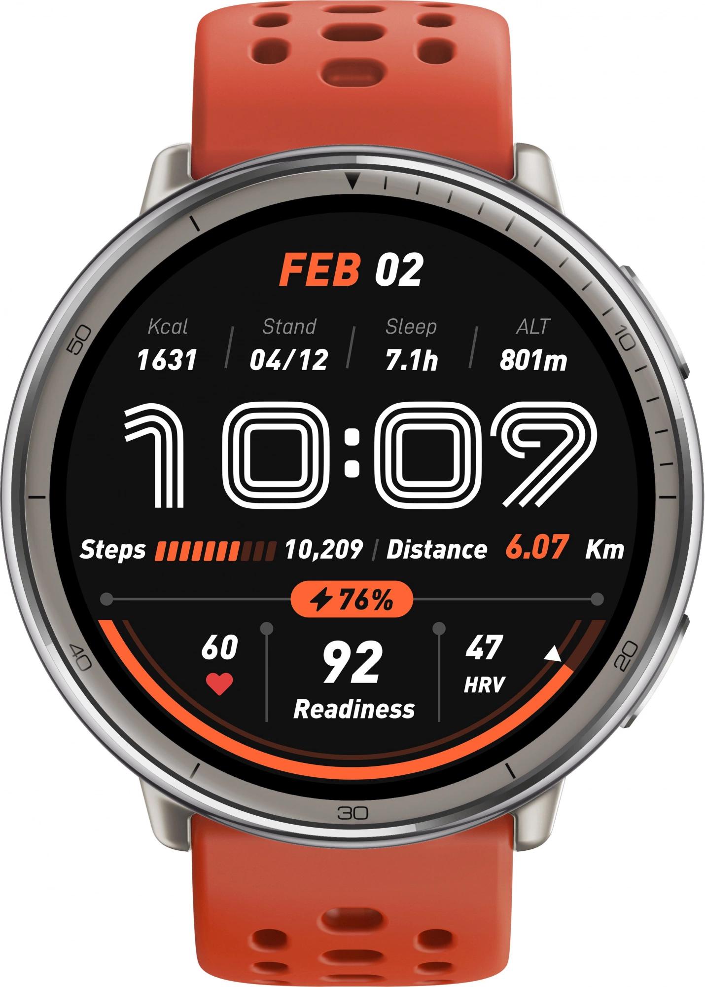 Умные часы, магнитная зарядная база (без кабеля), красный силиконовый ремешок, инструкция по эксплуатации.