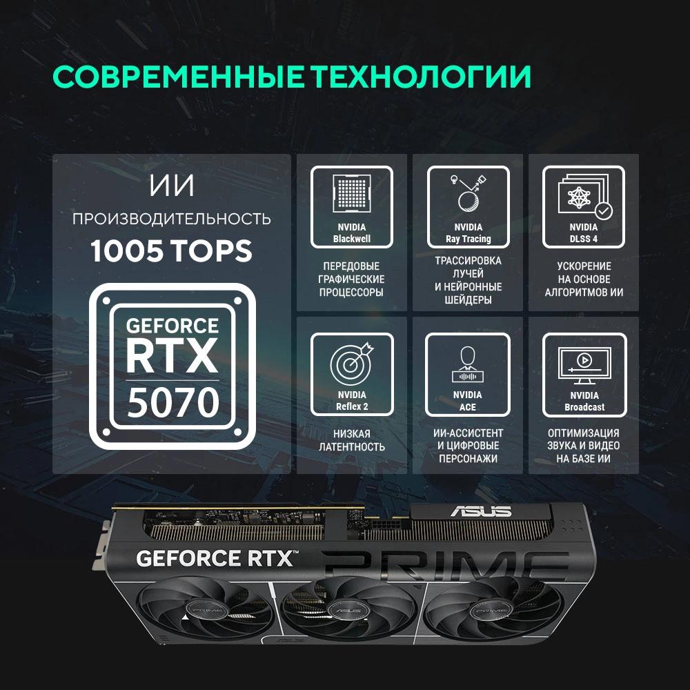 Видеокарта Asus PCI-E 5.0 PRIME-RTX5070-O12G NVIDIA GeForce RTX 5070 12Gb 192bit GDDR7 2557/28000 HDMIx1 DPx3 HDCP Ret