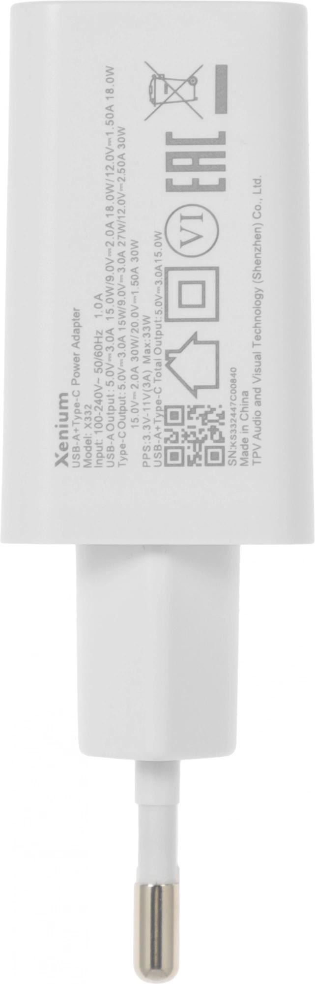 Сетевое зар./устр. Xenium X332 25W 3A+2A+1.5A USB Type-C универсальное белый (CCX332CW/00)