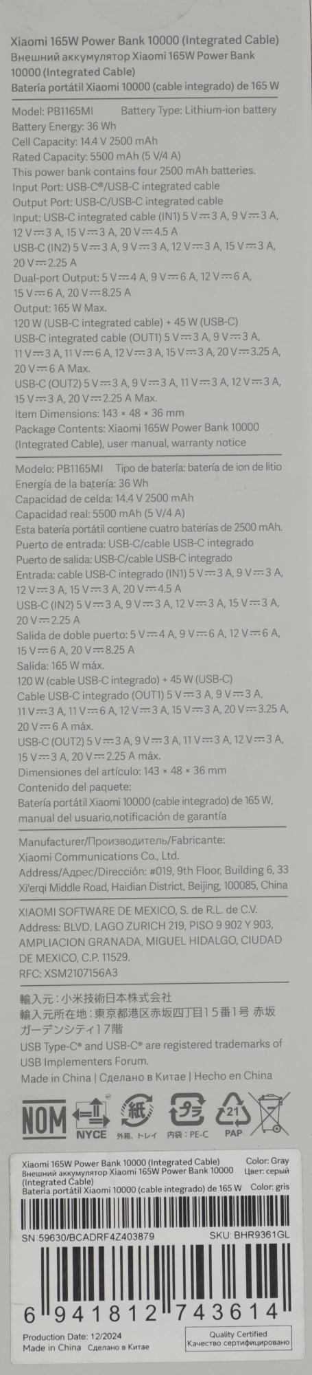 Type-C1: 5В=3А, Type-C1: 9В=3А, Type-C1: 11В=3А, Type-C1: 11В=6А, Type-C1: 12В=3А, Type-C1: 15В=3А, Type-C1: 20В=3.25А, Type-C1: 20В=6А, Type-C2: 5В=3А, Type-C2: 9В=3А, Type-C2: 11В=3А, Type-C2: 12В=3А, Type-C2: 15В=3А, Type-C2: 20В=2.25А