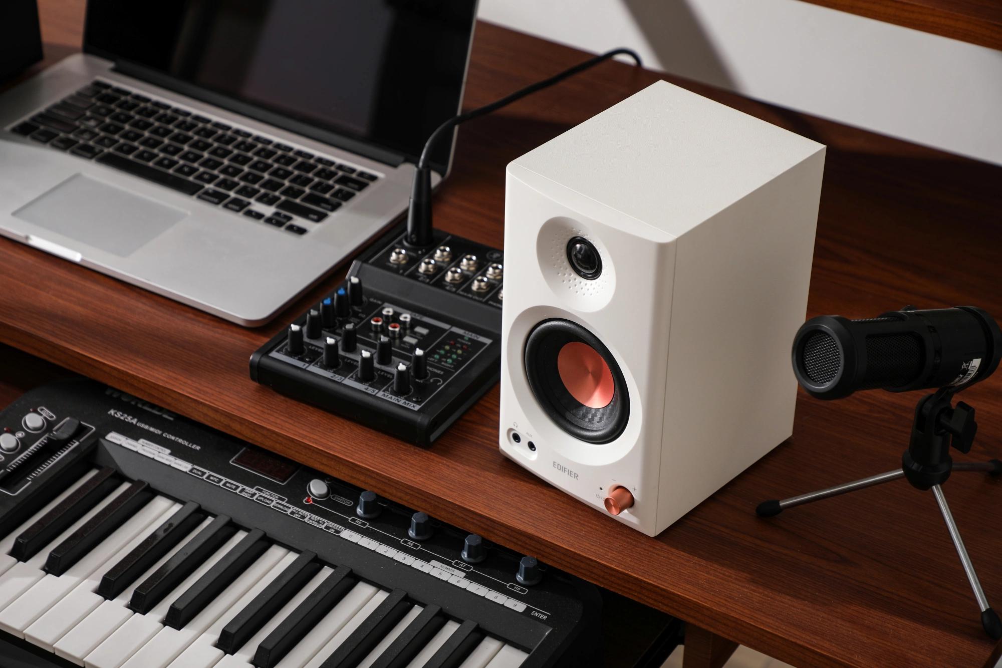Плоская АЧХ. Сертификация Hi-Res Audio. Несколько вариантов акустической настройки. Корпус из МДФ. 3, 5-дюймовые средне-низкочастотные динамики и 1-дюймовые шелковые купольные твитеры. Обработка звука с высоким разрешением 24 бит / 96 кГц. Работает с мобильным приложением EDIFIER ConneX