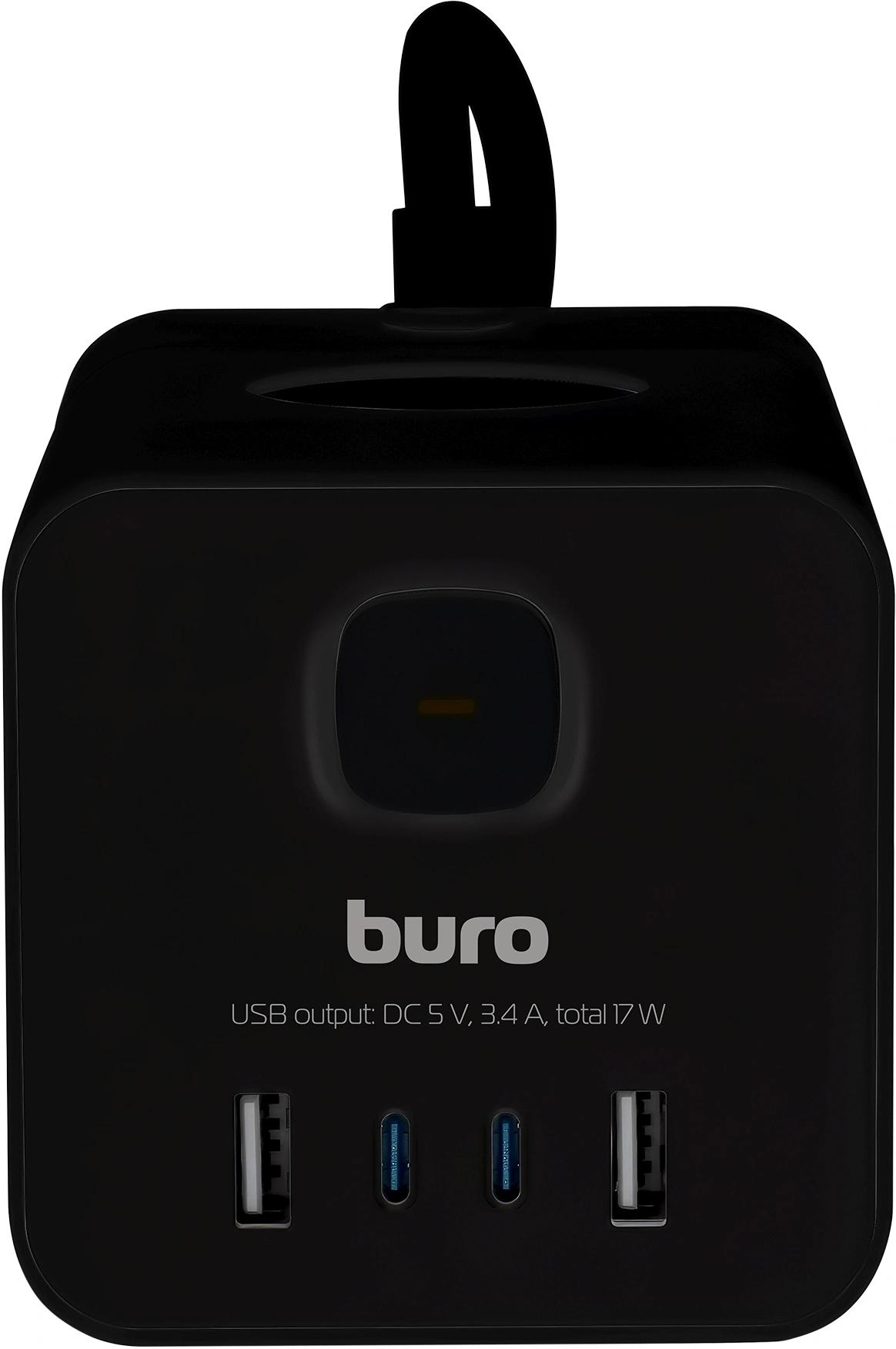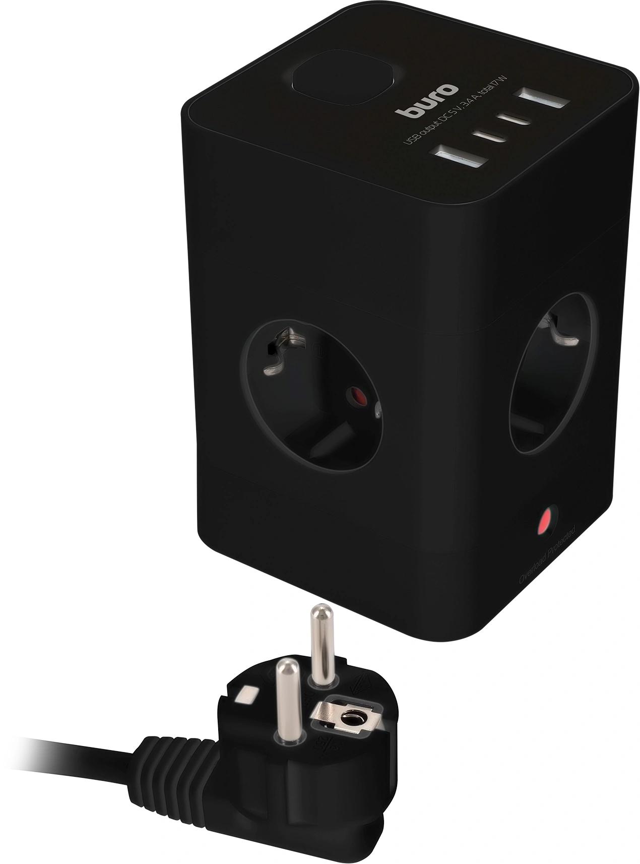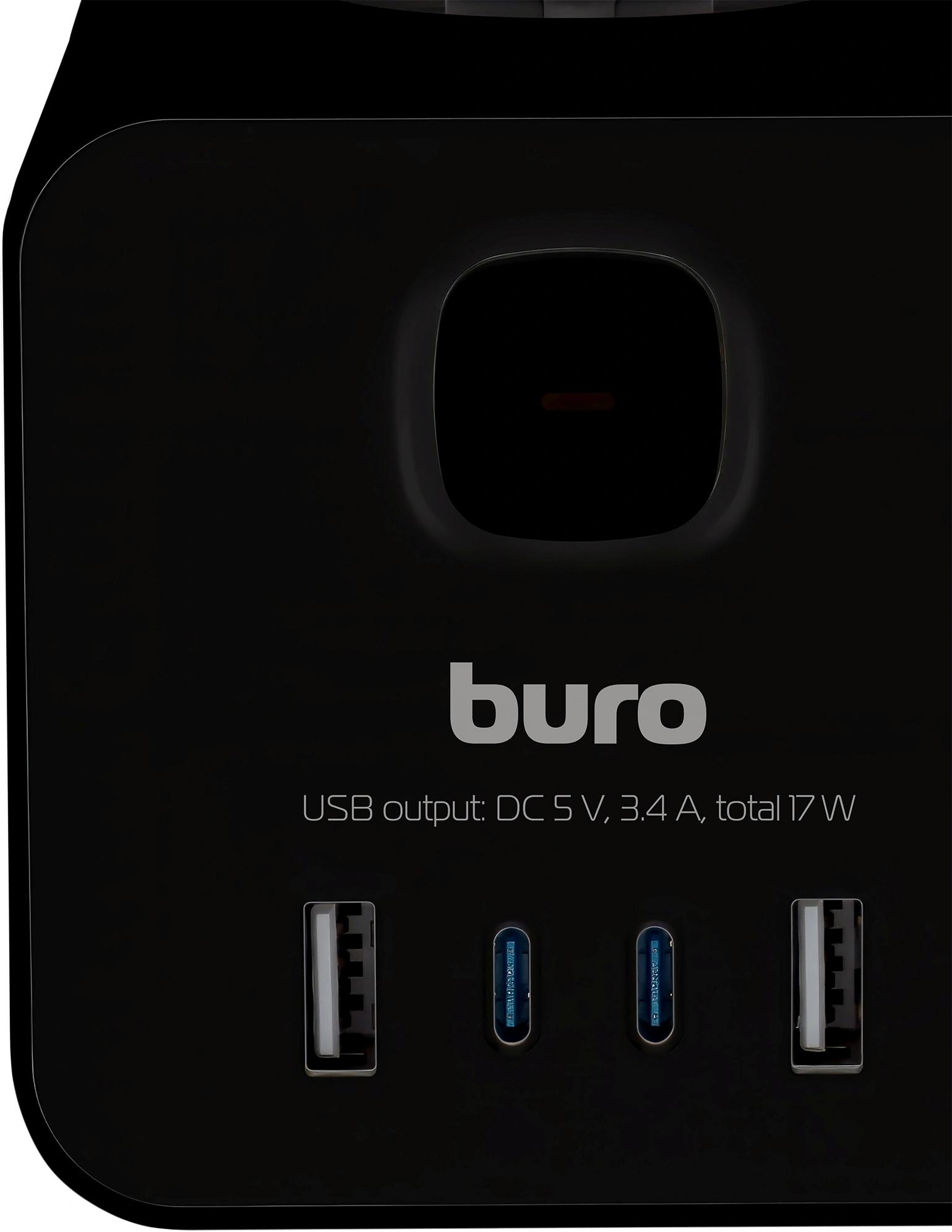 Сетевой удлинитель Buro BU-PTE4.1UC-B 1.5м (4 розетки) черный (пакет ПЭ)