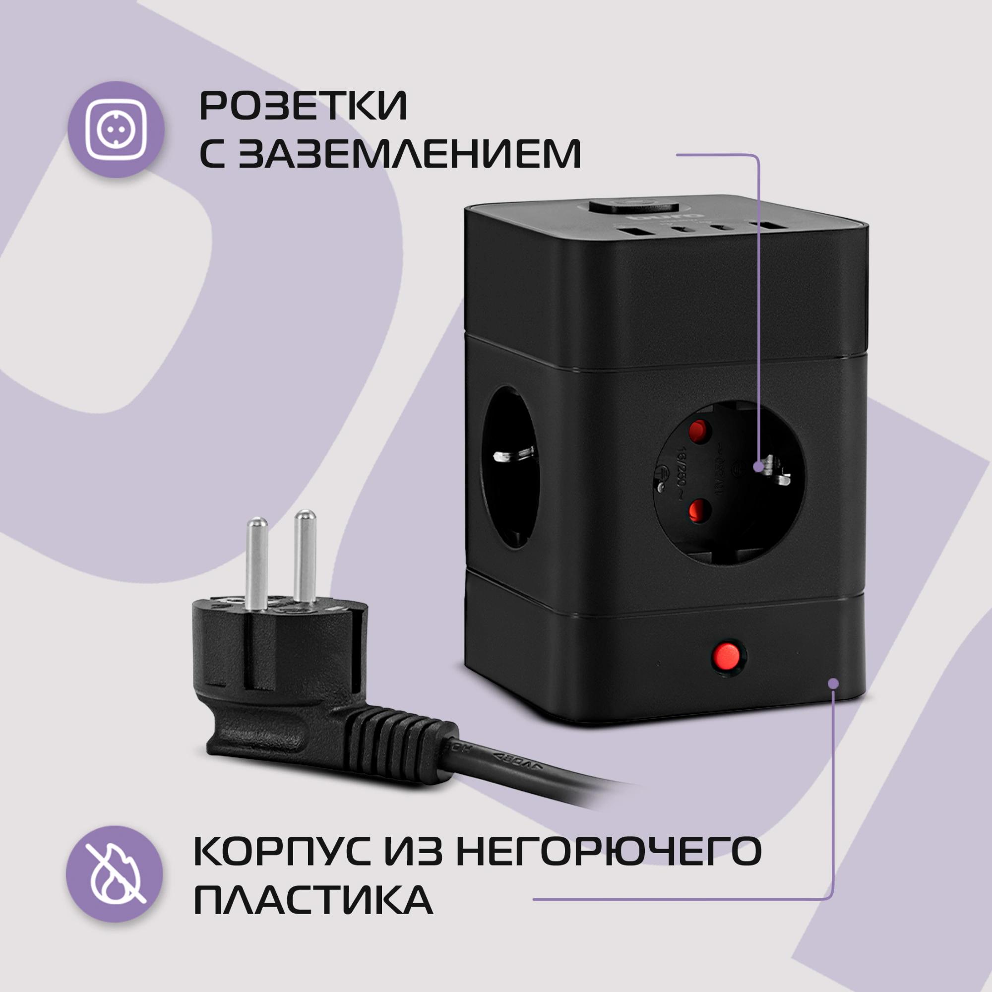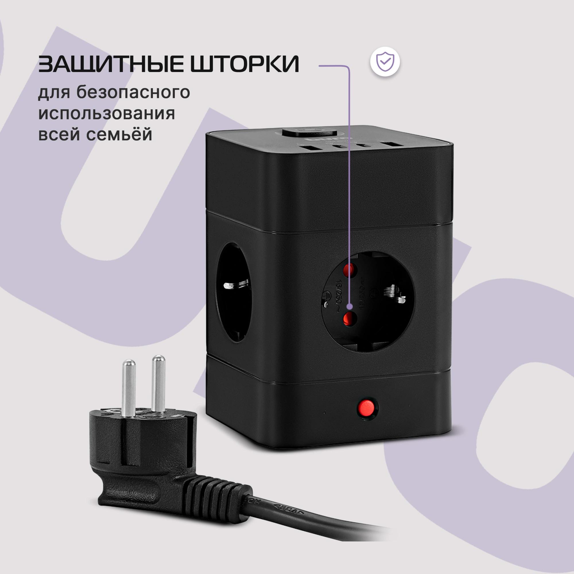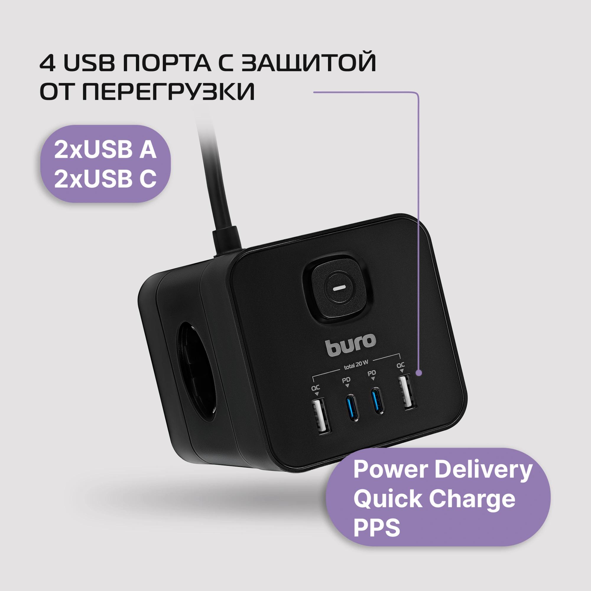 Сетевой удлинитель Buro BU-PTE4.1UC-Plus-B 1.5м (4 розетки) черный (коробка)