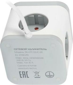 Сетевой удлинитель Buro BU-PC3.1UС-W 1.5м (3 розетки) белый (пакет ПЭ)